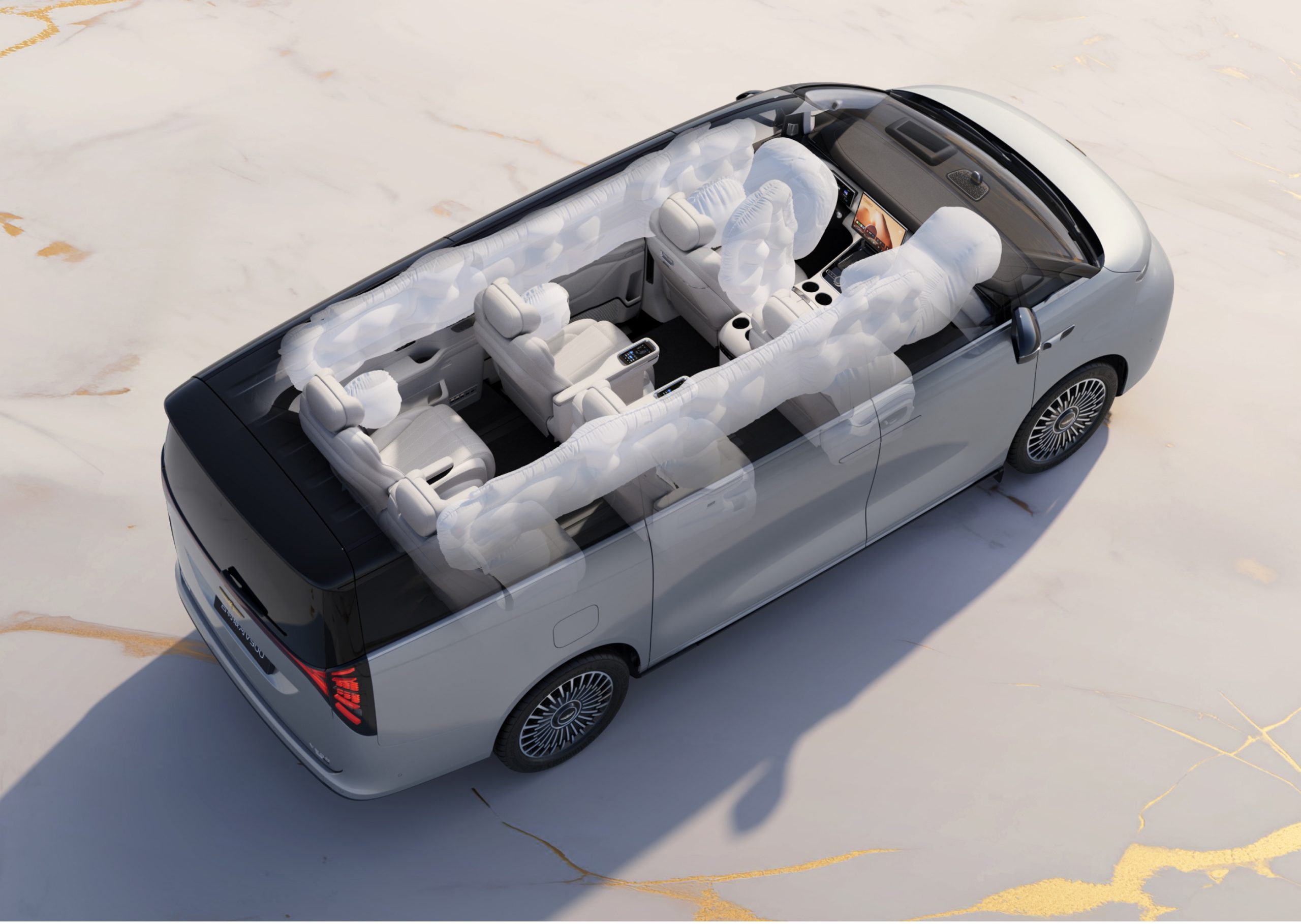 - ถุงลมนิรภัยกลาง (Far-side / Central Airbag) ลดการกระแทกระหว่างผู้ขับและผู้โดยสารตอนหน้า