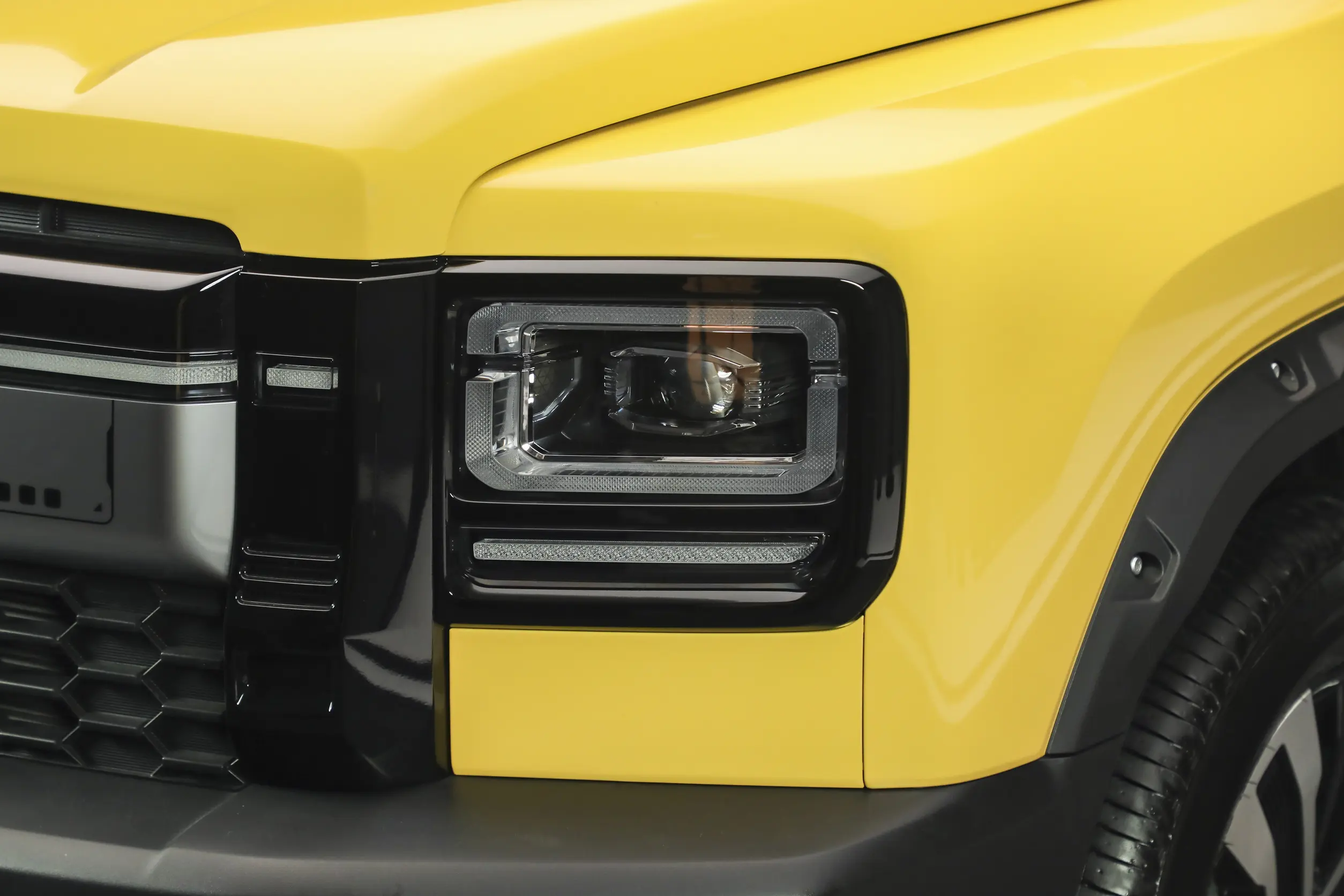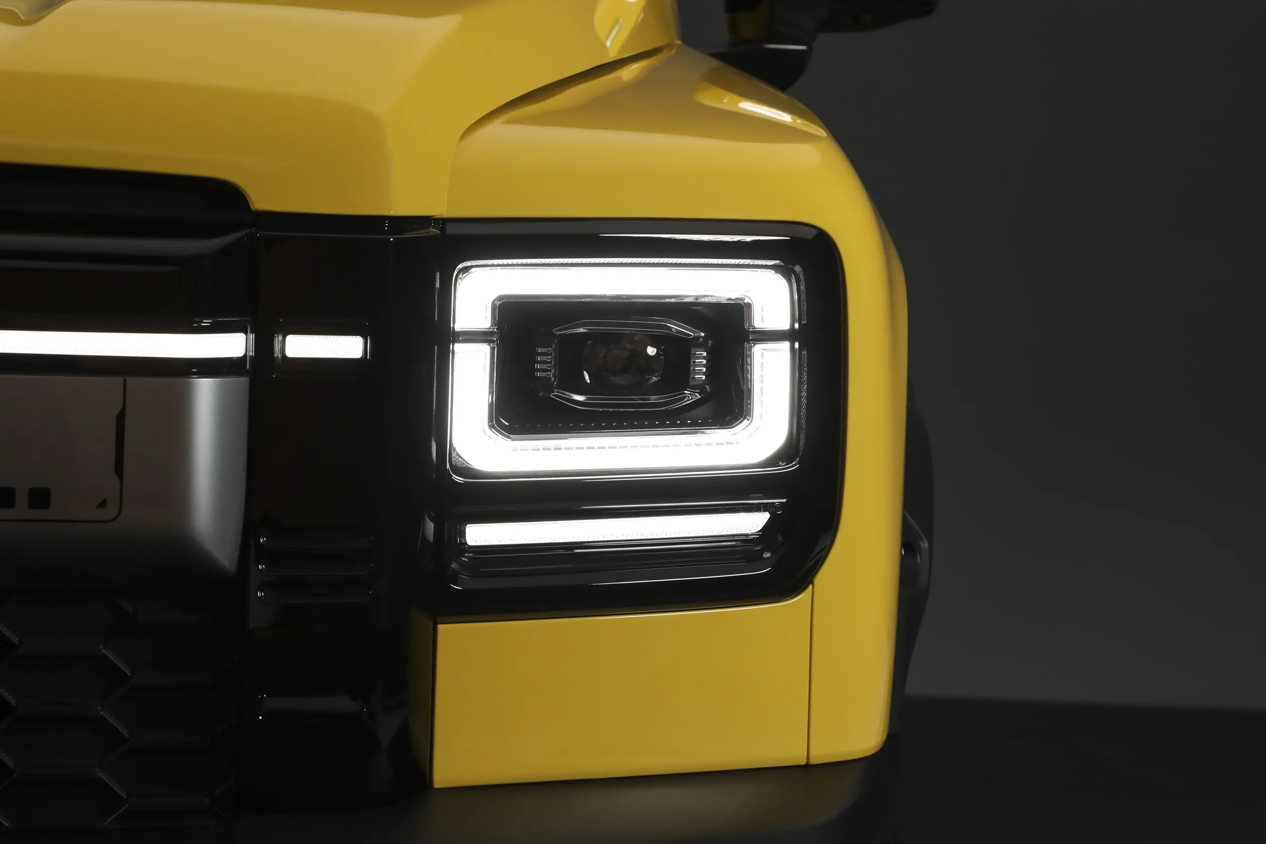 - ชุดไฟหน้าทรงเหลี่ยม: เปลี่ยนจากไฟหน้าทรงกลมในรุ่นเดิม มาเป็น “ไฟหน้าทรงเหลี่ยม” เพื่อให้รับกับดีไซน์ทรงกล่องของตัวรถโดยรวม