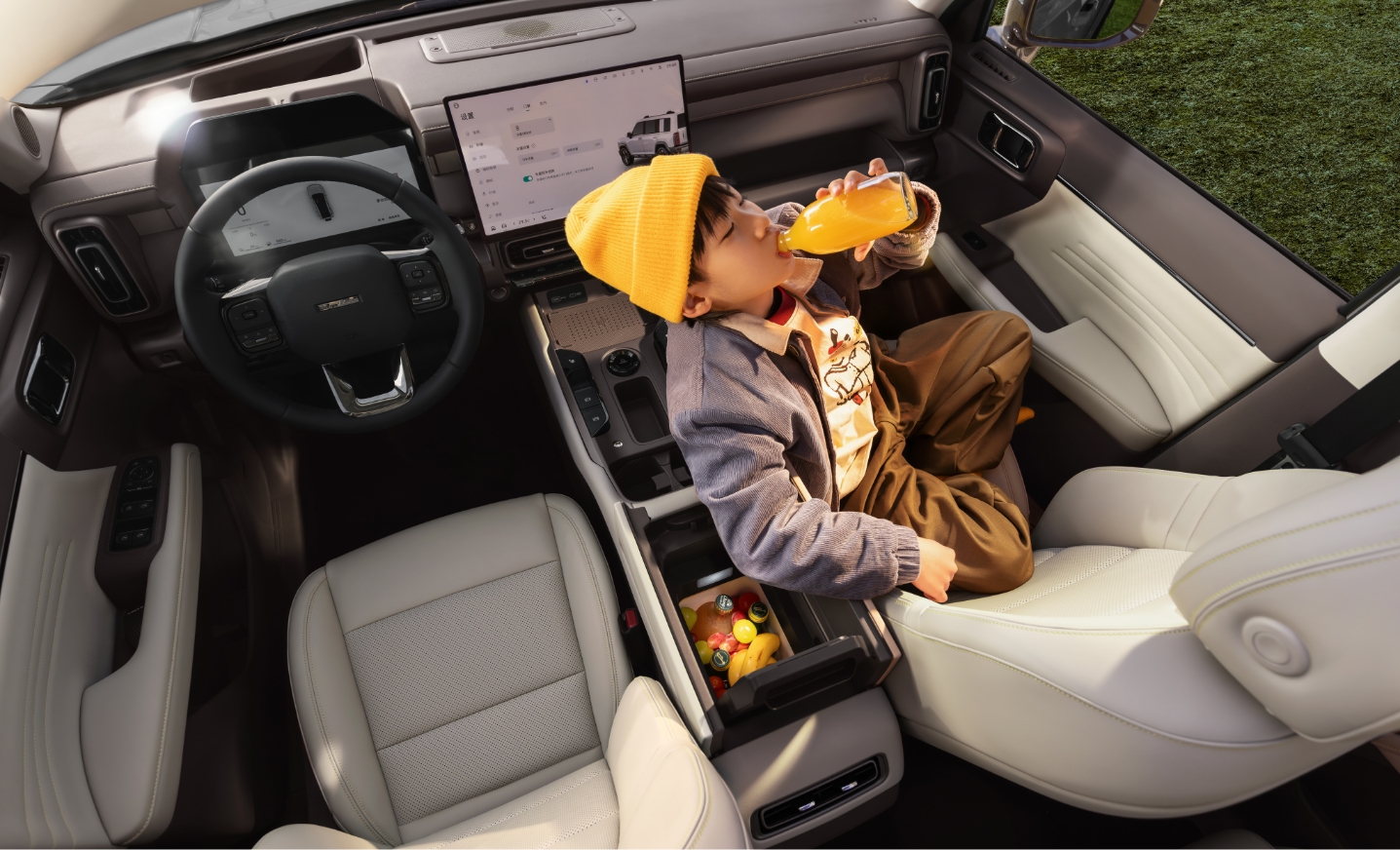 ภายในห้องโดยสารของ Haval Raptor PLUS ได้รับการออกแบบใหม่โดยผสานความบึกบึนสไตล์ Off-road เข้ากับความหรูหราและเทคโนโลยีล้ำสมัย เพื่อตอบโจทย์ทั้งการใช้งานในเมืองและการออกทริปแคมป์ปิ้ง