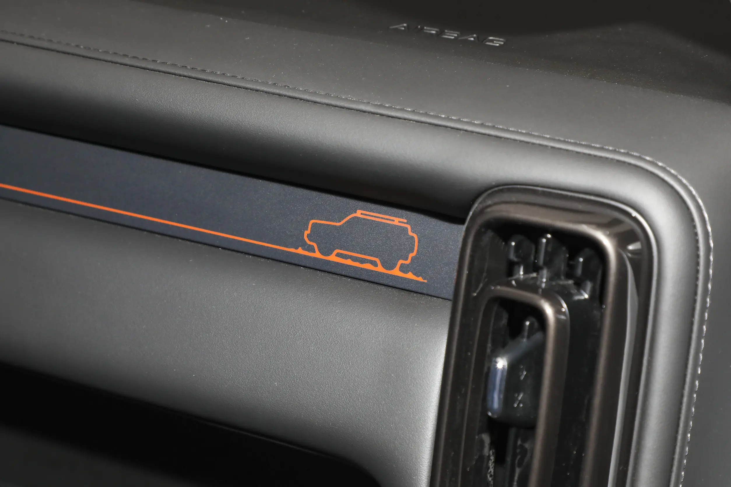- เสา C-Pillar: ออกแบบให้มีความหนาเป็นพิเศษ พร้อมตกแต่งด้วย “ลวดลายภูเขา” เสริมภาพลักษณ์รถ Off-road