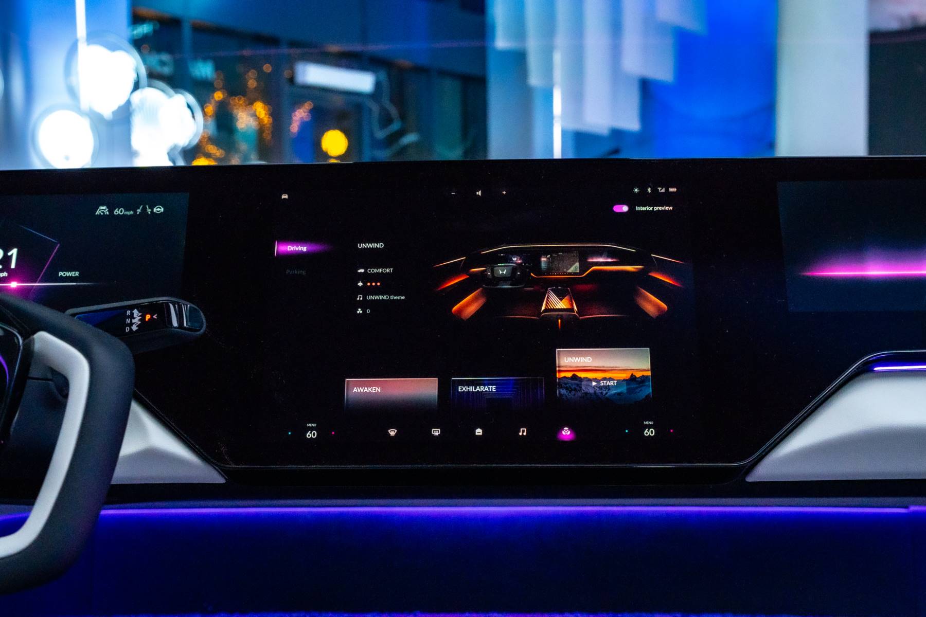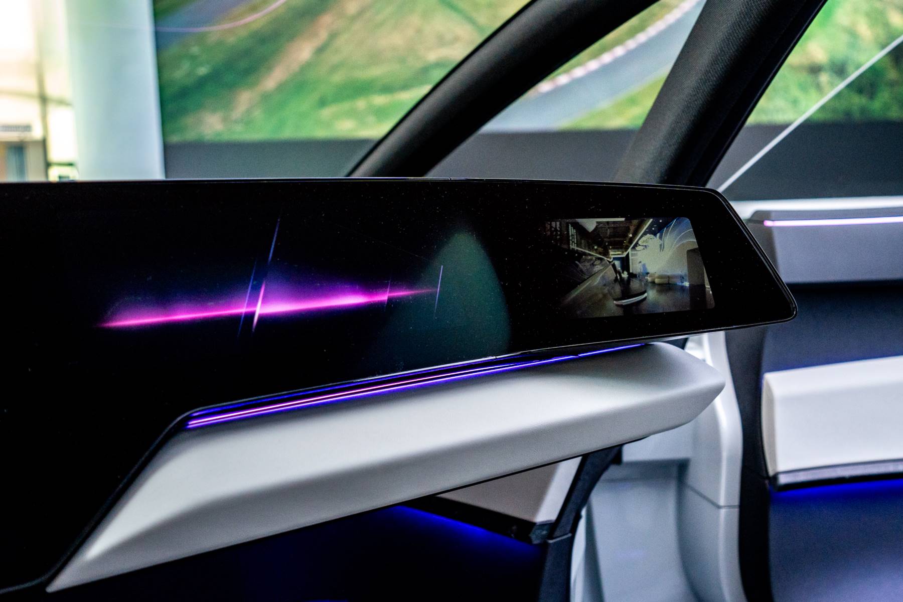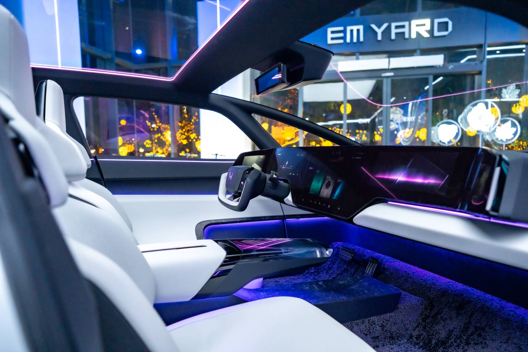 ด้านหน้า: องค์ประกอบที่ปกติมักแยกชิ้นกัน เช่น ไฟหน้า ฝาปิดช่องชาร์จ และโลโก้เรืองแสง ถูกออกแบบให้รวมอยู่ใน “พื้นที่หน้าจอ” เดียวกัน ส่งผลให้หน้ารถดูสะอาด ล้ำ และมีเอกลักษณ์ทันทีที่เห็น