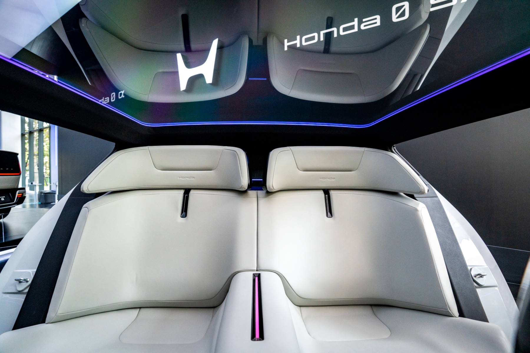 Honda 0 α เน้นการทำแพ็กเกจตัวรถให้ดูเพรียวบาง โดยยังรักษาความสบายของผู้โดยสารเป็นหลัก ฮอนด้าระบุว่าห้องโดยสารถูกออกแบบให้ “บาง” แต่ยังมีพื้นที่ใช้งานกว้างขวางสำหรับทุกตำแหน่งนั่ง