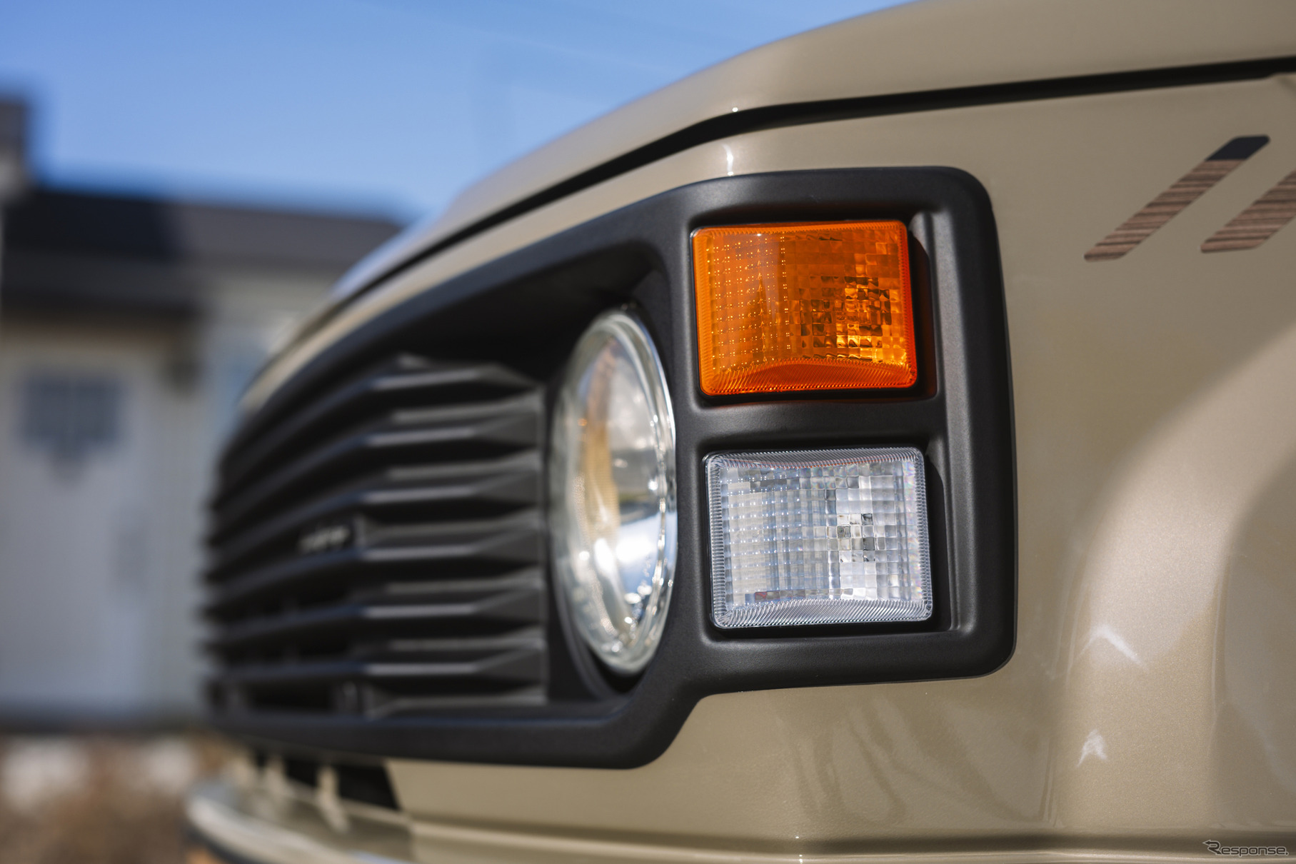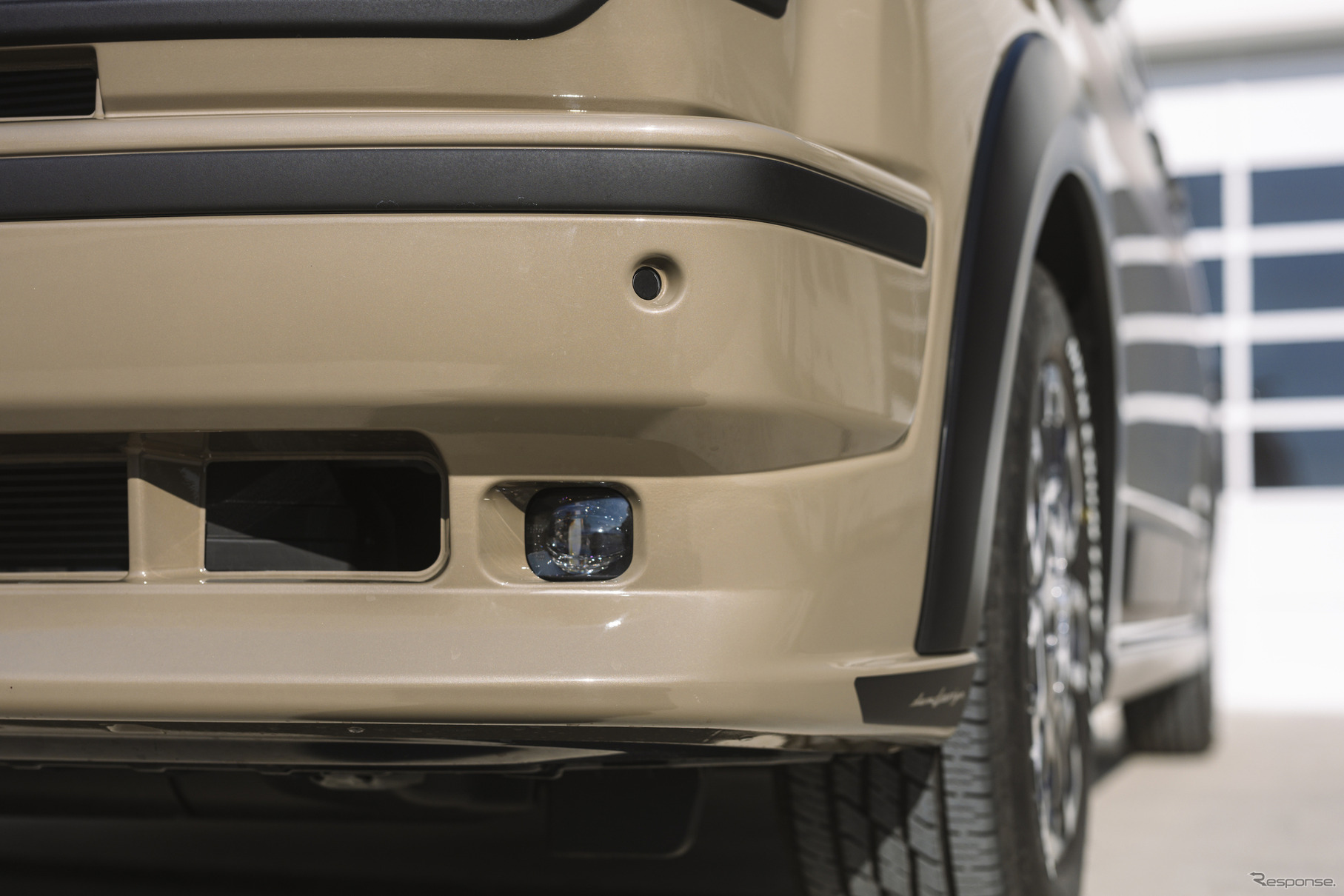 กันชนหน้าเป็นดีไซน์เรโทร ช่องดักอากาศเรียวยาว พร้อมคางหน้าที่ยื่นออกมาเล็กน้อย เสริมความรู้สึกแบบรถใช้งานหนักในยุคเก่า ปิดท้ายด้วยฝาครอบฝากระโปรงหน้าทรงเรียบ ทำให้ภาพรวมของด้านหน้าดูเป็นแผ่นเดียว แข็ง และชัดเจน
