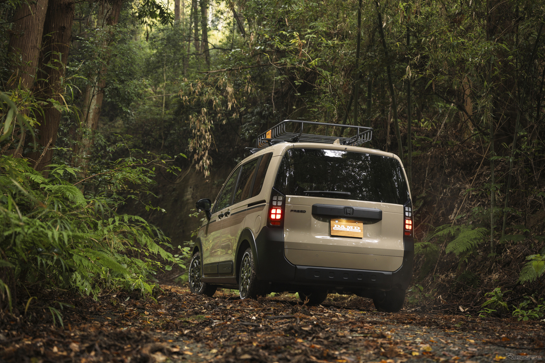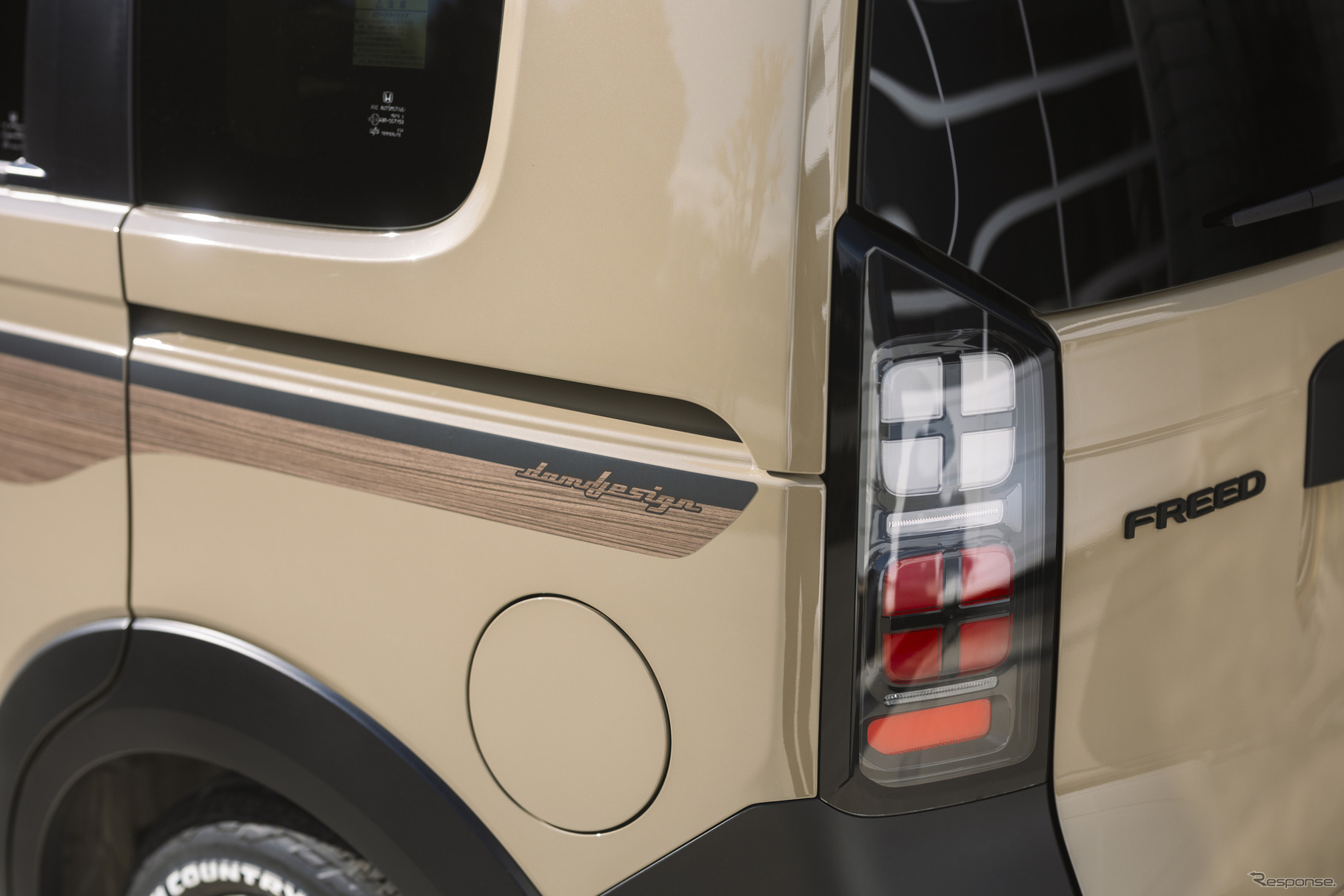 ส่วนท้ายของรถยังคงรูปทรงกล่องตั้งตรงตามแบบฉบับ Honda Freed จากโรงงาน เพื่อรักษาความเป็นมินิแวนใช้งานจริง และไม่ทำให้รถดูหลุดคอนเซ็ปต์จนเกินไป