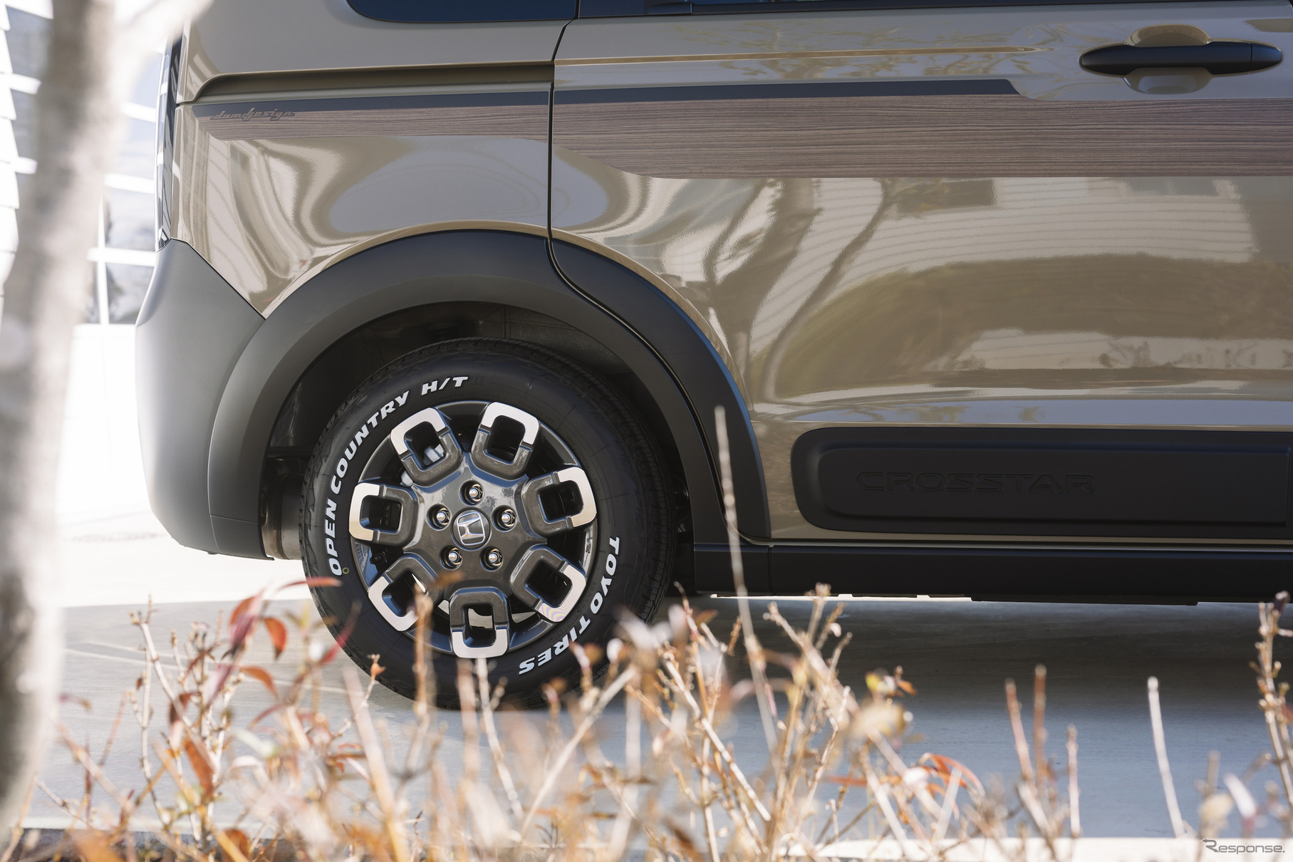 สำหรับรุ่น Crosstar สามารถเพิ่มความดุดันได้อีกขั้นด้วยออปชันเสริม เช่น แร็คหลังคาทรงตะกร้า และการจับคู่กับยางที่ดูหนาขึ้น สร้างภาพลักษณ์แนวแคมป์ปิ้งและสายลุย