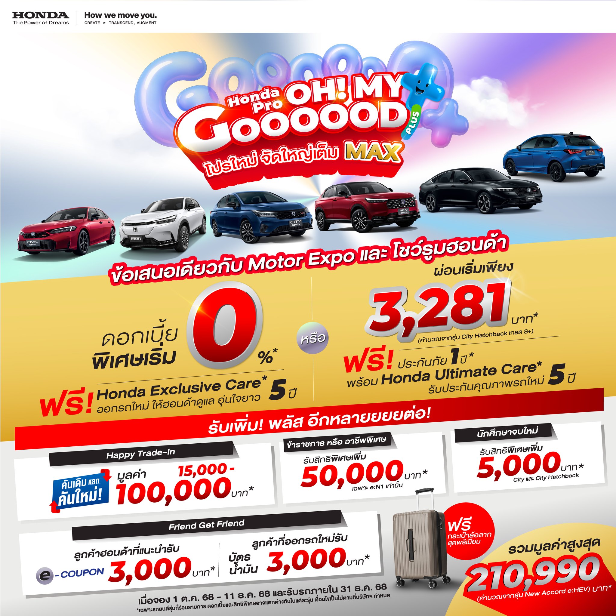 Honda Pro OH! MY GOOOOOD PLUS+ แคมเปญโปรฯ ส่งท้ายปี จัดเต็มทั้งดอกเบี้ย 0% และสิทธิพิเศษรวมสูงสุด 210,990 บาท*
