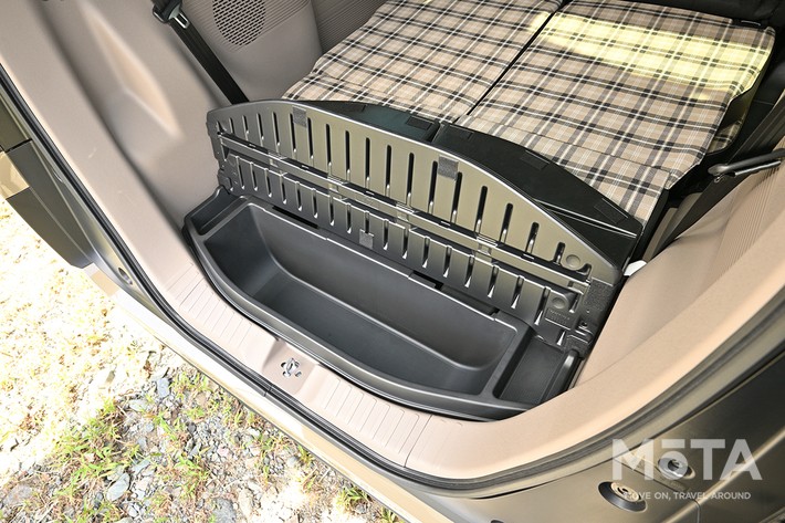 - กล่องใต้พื้นที่ออกแบบมาเป็นพิเศษสำหรับจัดเก็บสิ่งของต่างๆ เช่น เก้าอี้พับ ฝาสามารถใช้เป็นโต๊ะได้ กล่องใต้พื้นด้านหลังสุดของพื้นมีความจุมากประมาณ 18 ลิตร และมีกระเป๋าตื้นทั้งสองด้านของกล่อง
