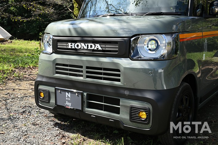 N-BOX JOY มาพร้อมกับแพ็คเกจ Active Face Package เป็นอุปกรณ์เสริมของแท้ และด้านนอกมีโลโก้ “HONDA” วางไว้ตรงกลางกระจังหน้าสำหรับ N-BOX JOY โดยเฉพาะชุดไฟตัดหมอก LED เพิ่มความกระชับบริเวณรอบกันชน