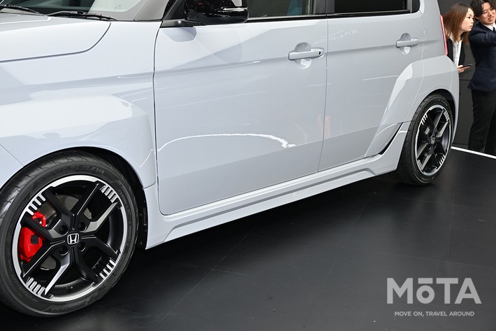 ตัวถังใช้แนว “Low & Wide” พร้อม บังโคลนแบบ Blister ขนาดใหญ่ ที่ขยายช่วงล้อให้กว้างขึ้น เพิ่มทั้งความมั่นคงและบุคลิกที่ทรงพลัง ดูแวบแรกอาจคล้ายรถ Kei Car แต่มีกล้ามเนื้อและมิติที่ “แน่น” กว่าชัดเจน