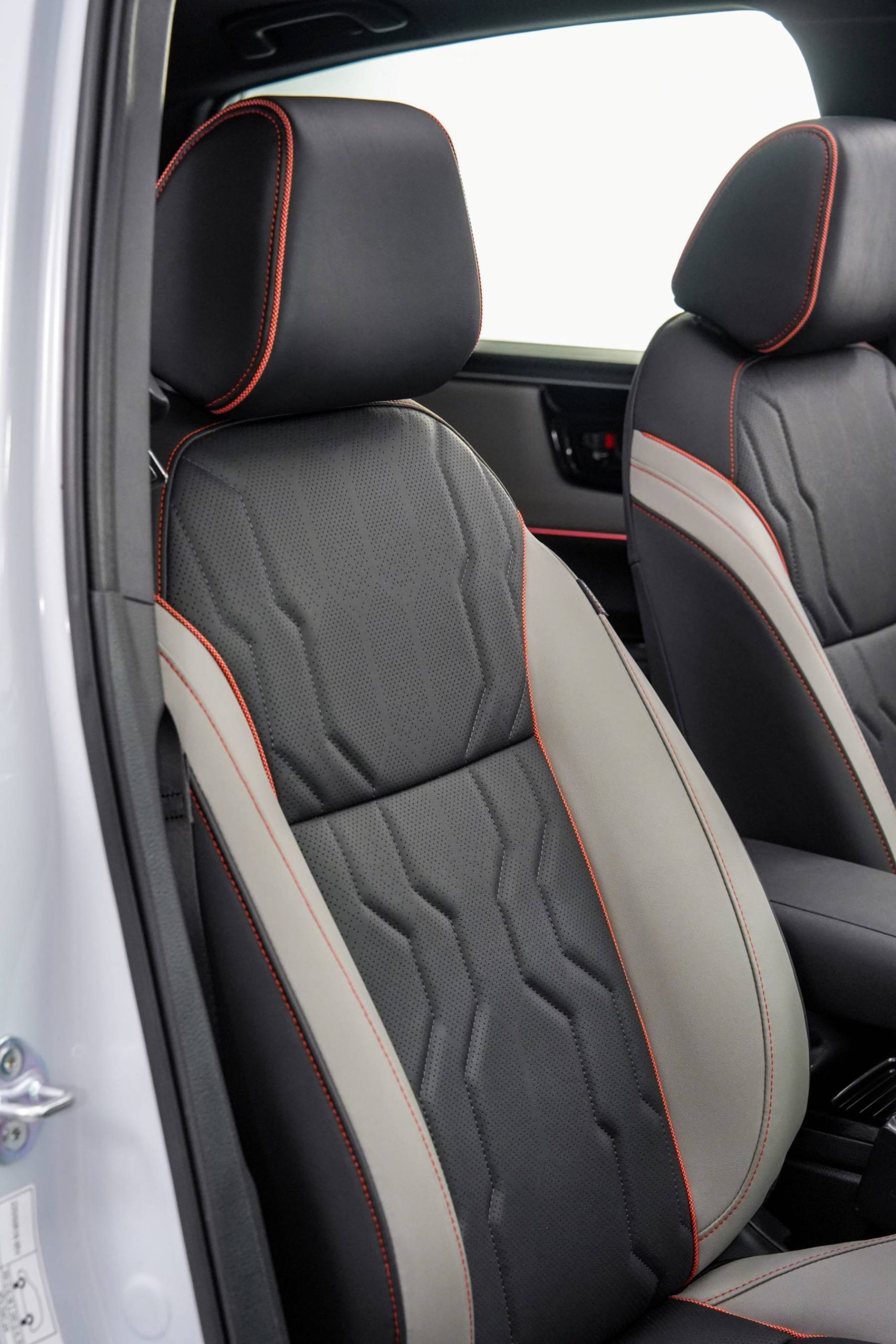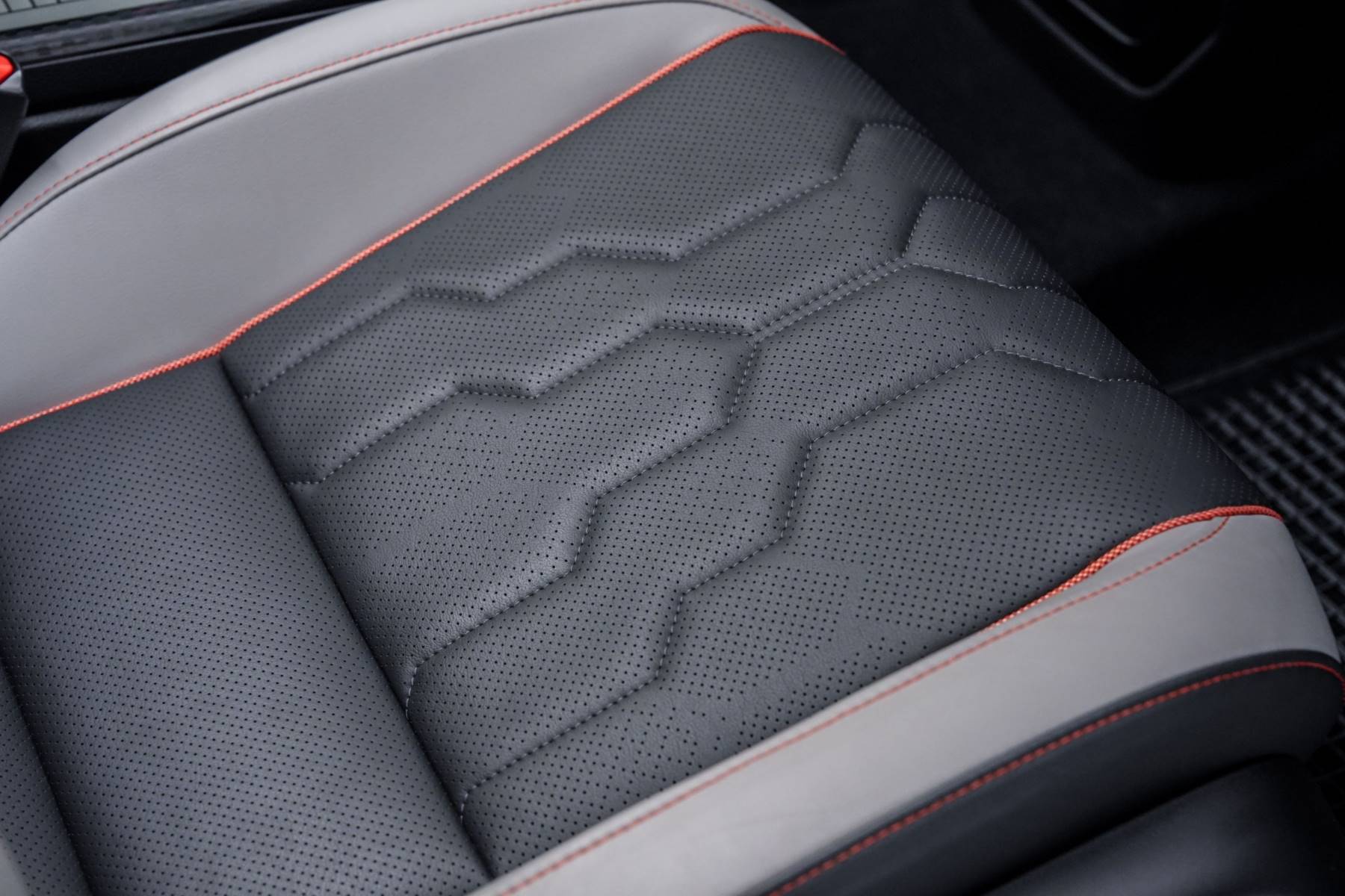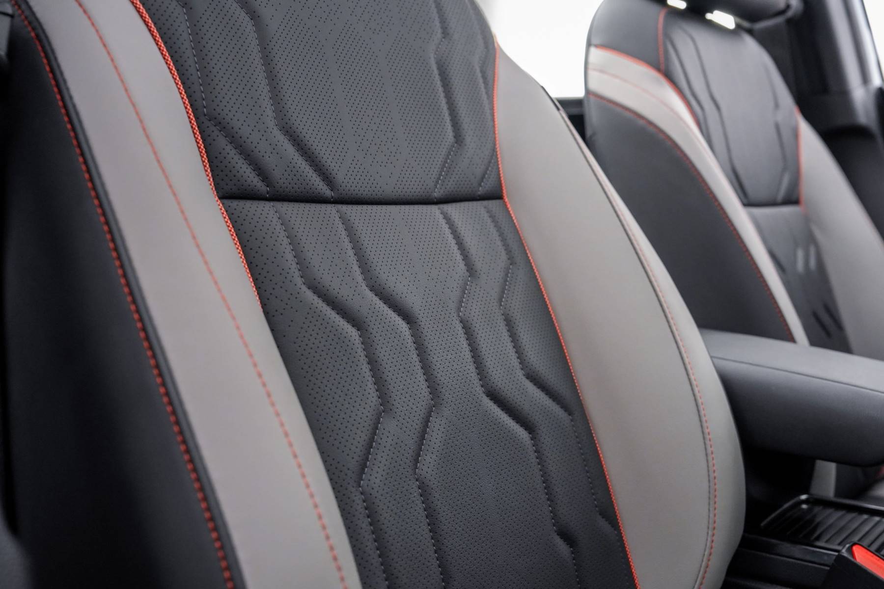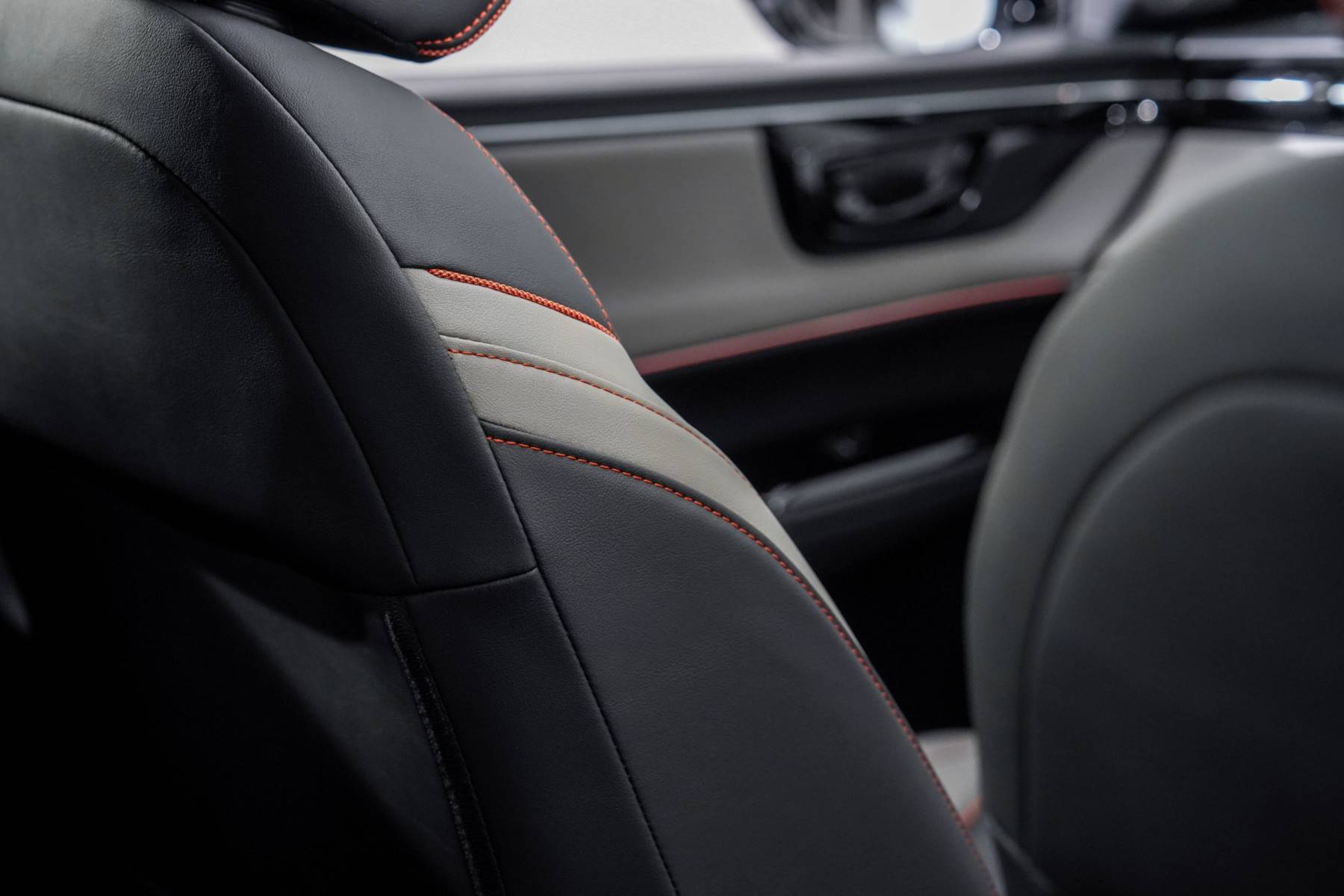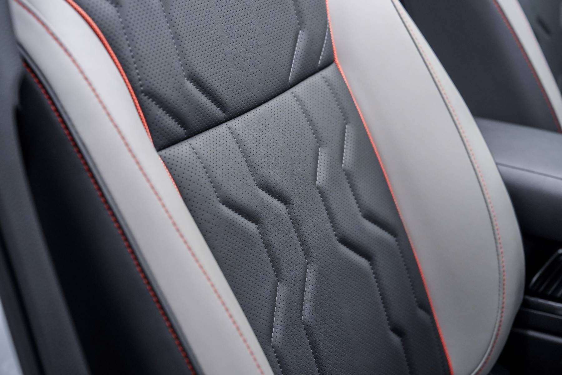 ภายในห้องโดยสารสีทูโทน เทา / ดำ พร้อมตกแต่งแถบสีส้ม