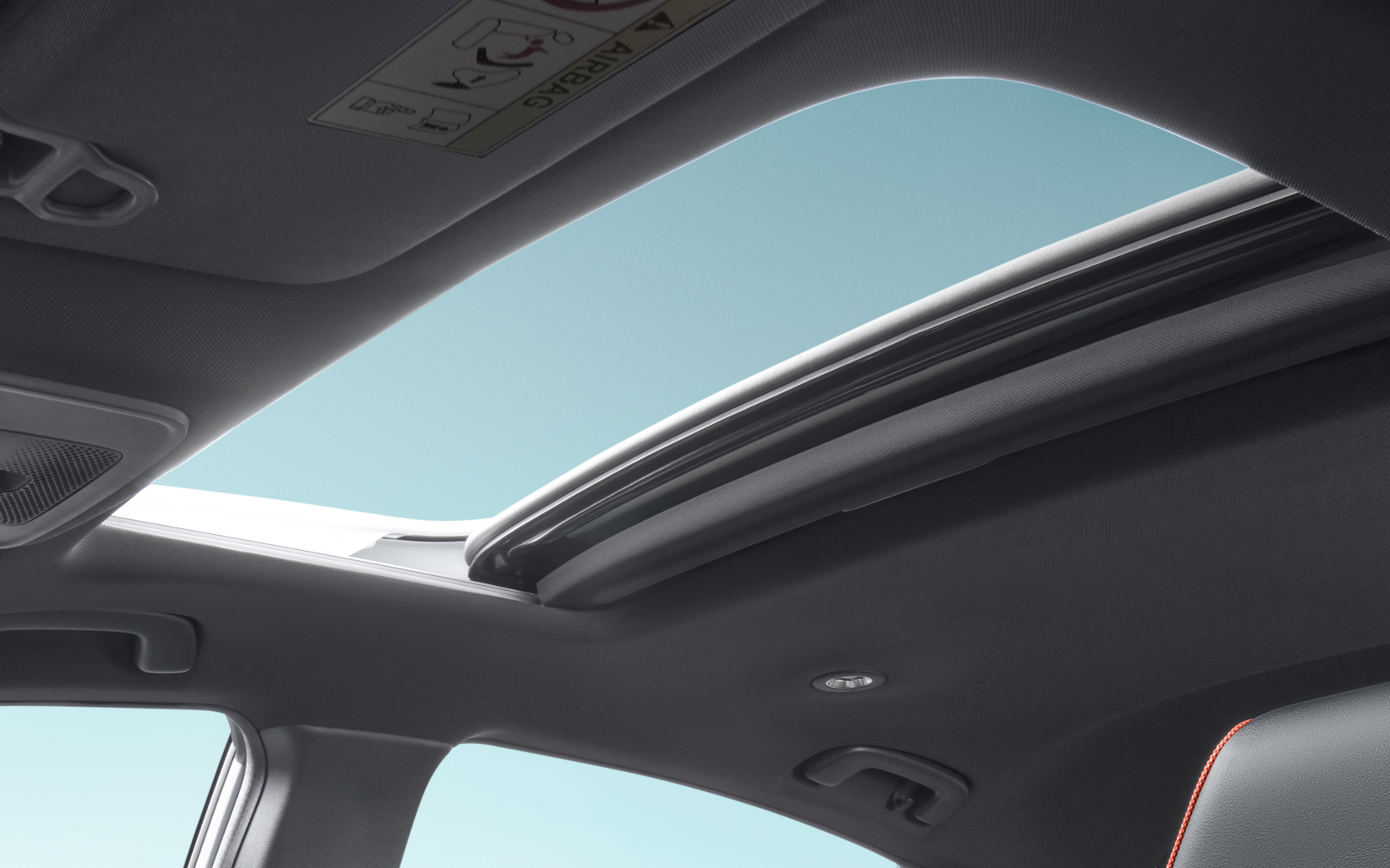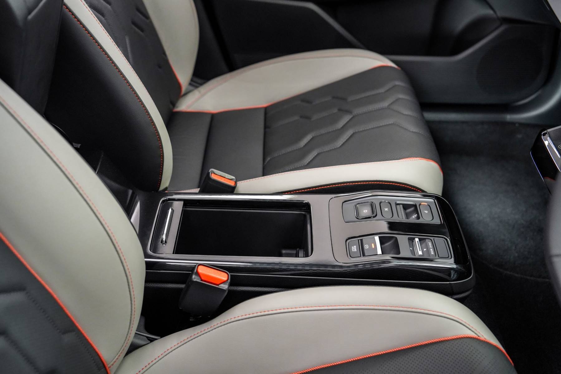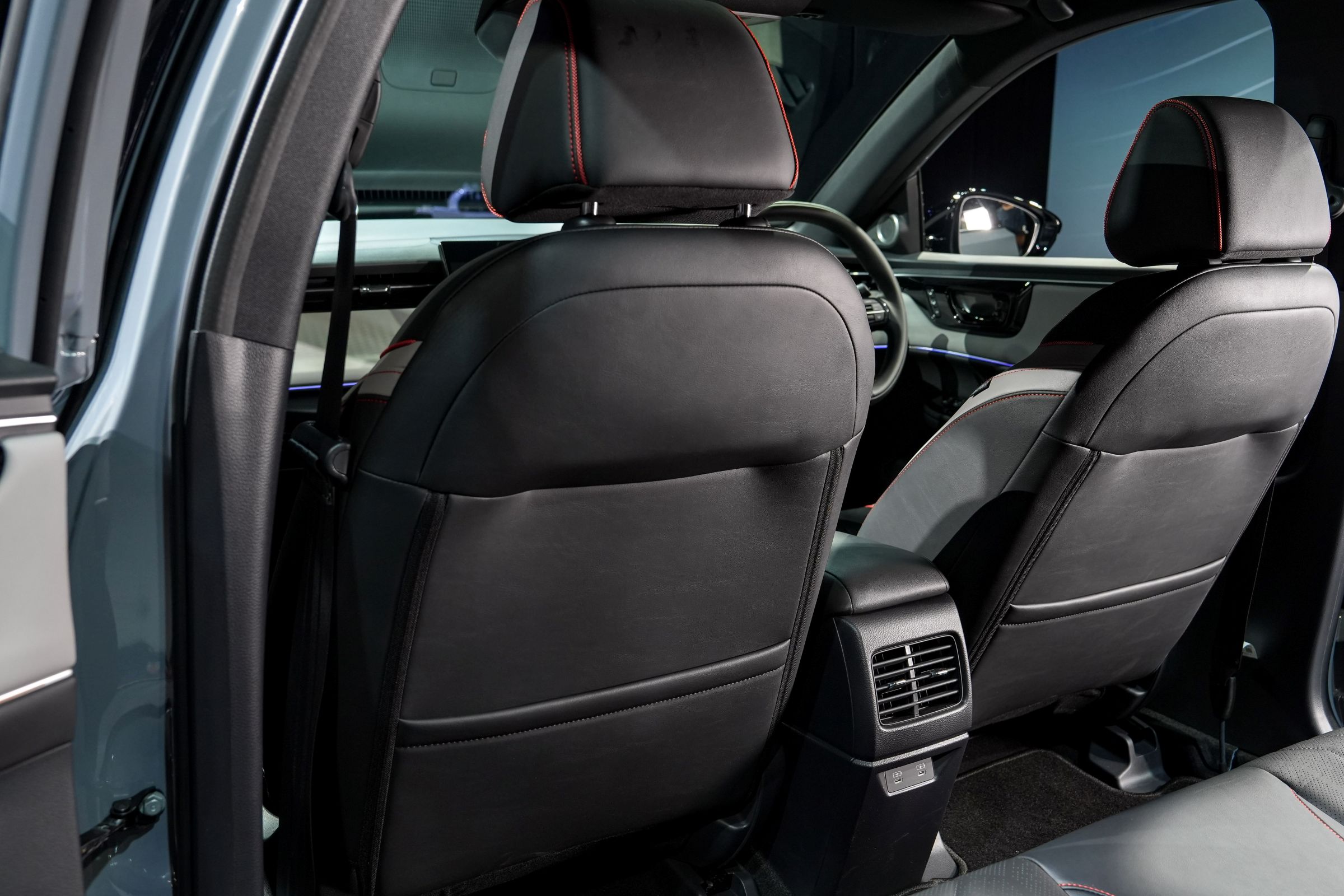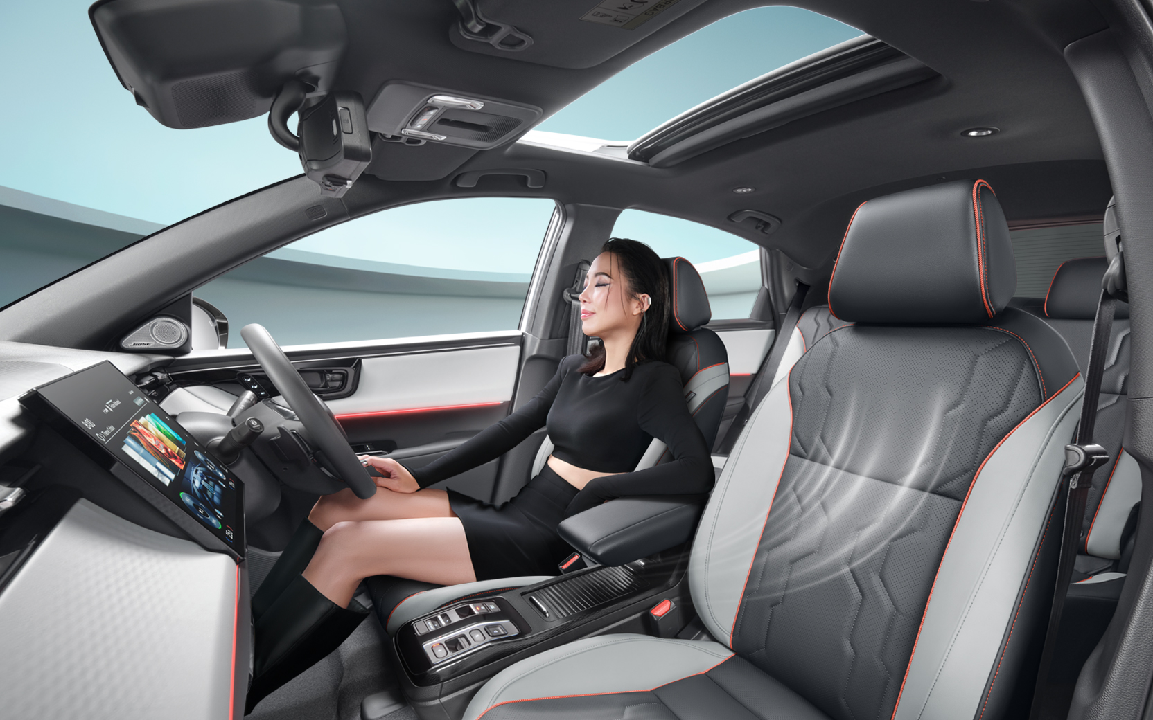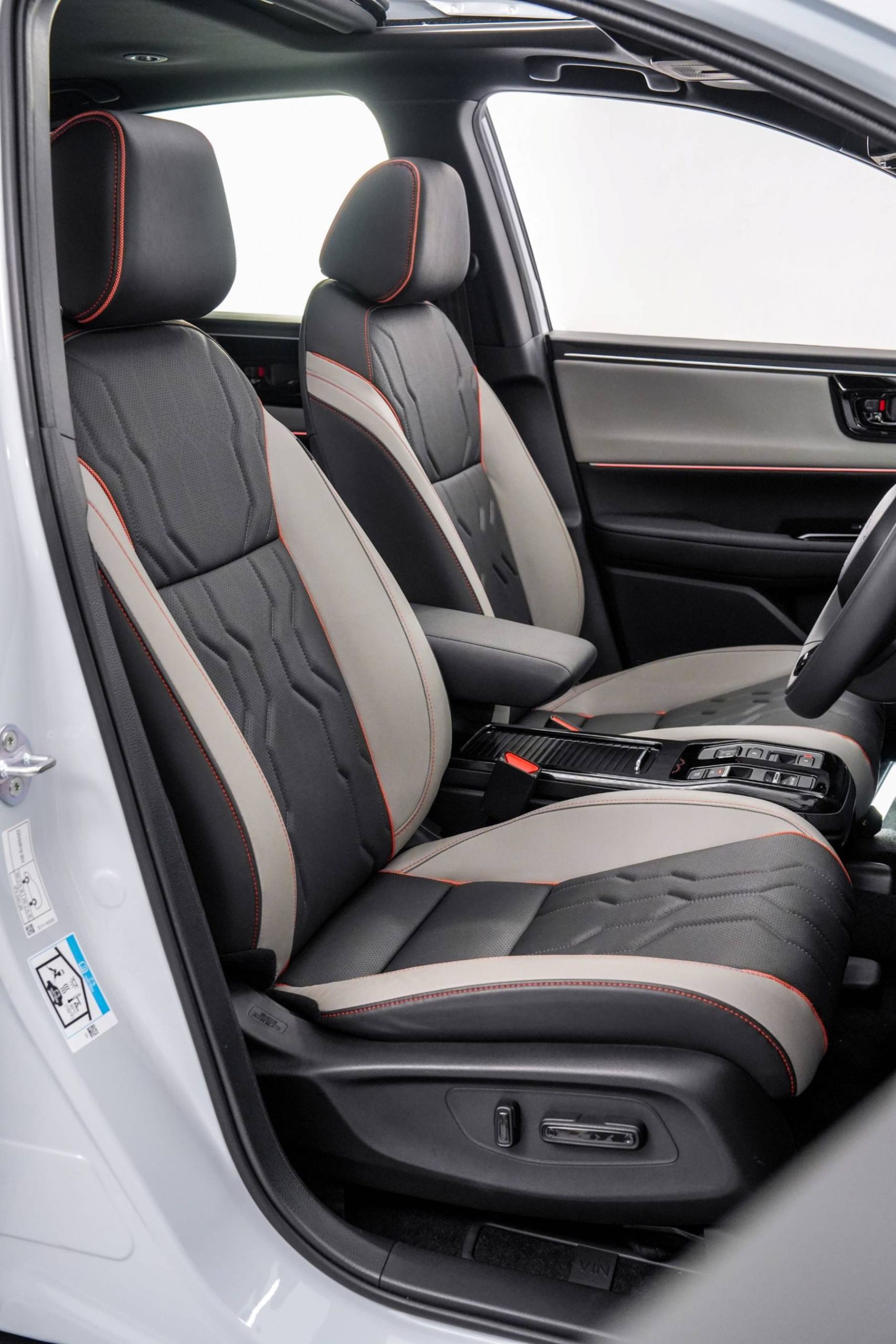 ภายในห้องโดยสารสีทูโทน เทา / ดำ พร้อมตกแต่งแถบสีส้ม