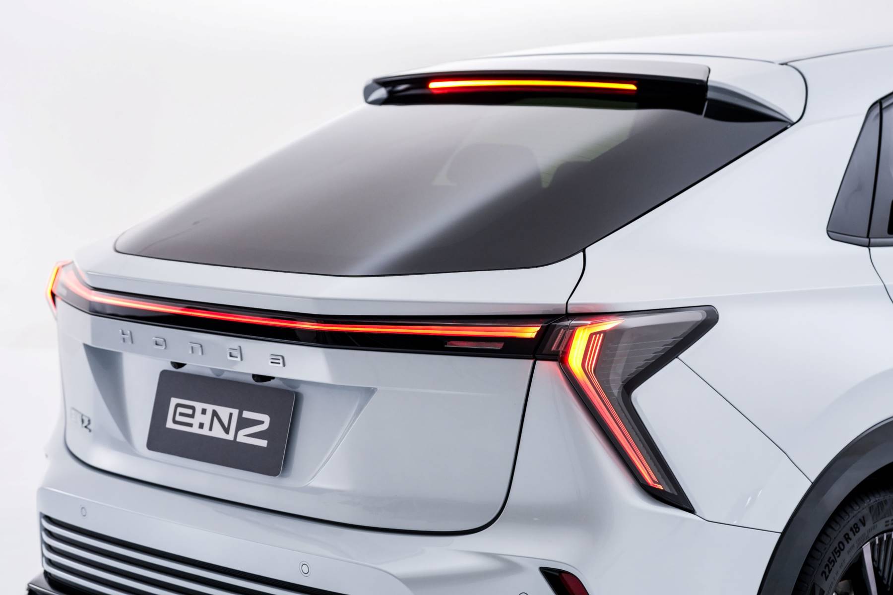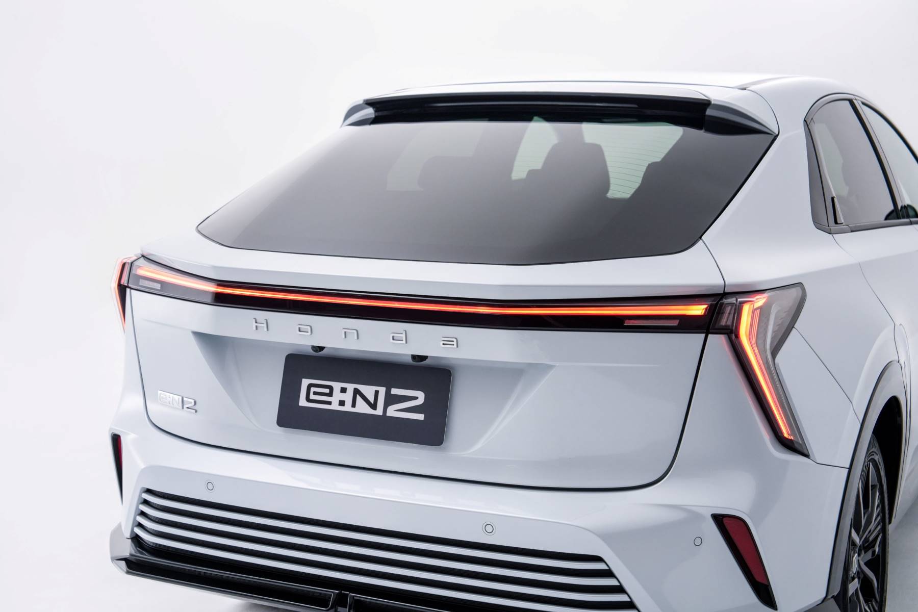 Honda e:N2 ถูกออกแบบให้เป็น SUV ไฟฟ้าที่มีเส้นสายสปอร์ตทันสมัย ด้วยดีไซน์ตัวถังแบบ Fastback ที่ให้ภาพลักษณ์โฉบเฉี่ยว พร้อมกระจังหน้าแบบ Grille-less Design ซึ่งเป็นเอกลักษณ์ของรถยนต์ไฟฟ้า