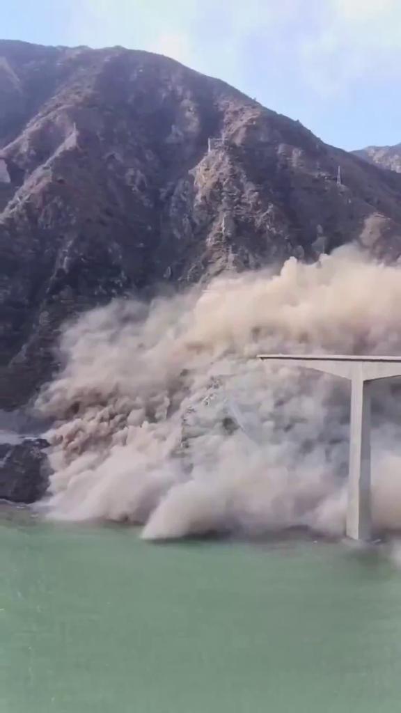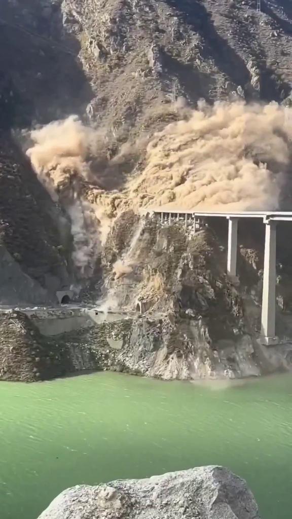 คลิปจากกล้องวงจรปิดและโทรศัพท์มือถือที่เผยแพร่บน X (ทวิตเตอร์) และ Weibo ของจีน แสดงให้เห็นช่วงเวลาที่ทางลาดฝั่งหนึ่งของสะพานทรุดตัวลงก่อนที่โครงเหล็กทั้งช่วงจะ “ดึง” กันลงสู่หุบเขาอย่างรุนแรง สร้างกลุ่มฝุ่นขนาดใหญ่พวยพุ่งขึ้น
