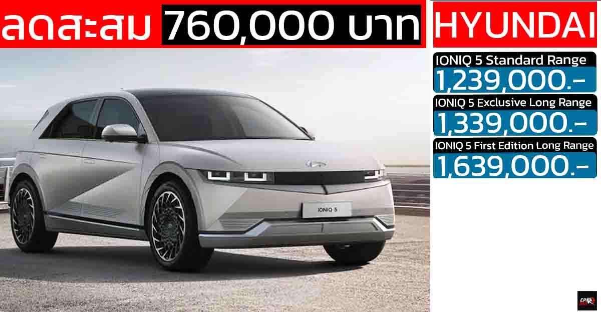 ส่วนลดสูงสุด 760,000 บาท Hyundai Ioniq 5 EV เหลือ 1.23 – 1.63 ล้านบาท วิ่งได้กว่า 480 กม./ชาร์จ WLTP