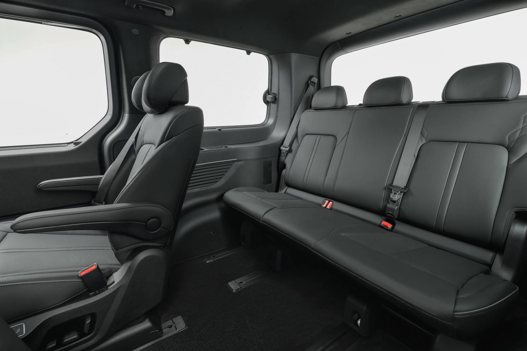 STARIA Electric ถูกวางคอนเซ็ปต์ให้ภายในเป็น “พื้นที่ใช้ชีวิต” มากกว่าห้องโดยสารรถยนต์ ด้วยข้อได้เปรียบของ EV อย่าง พื้นเรียบ และแพ็กเกจการวางระบบที่ช่วยให้ได้พื้นที่มากขึ้น ไฮไลต์ที่ Hyundai เน้น ได้แก่
