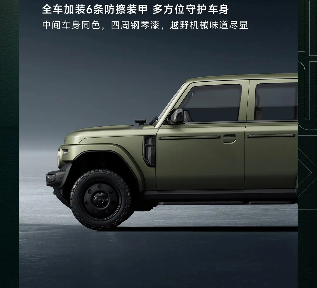 เน้นดีไซน์สไตล์รถทหาร สีเขียวเทาด้านลดแสงสะท้อน เหมาะสำหรับการพรางแสงในลักษณะทหาร