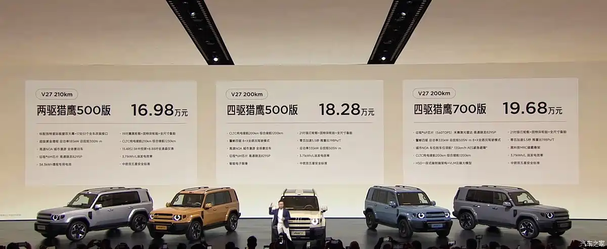 [รถใหม่เปิดตัว] เมื่อวันที่ 13 มีนาคมที่ผ่านมา iCAR V27 ได้เปิดตัวและประกาศราคาขายอย่างเป็นทางการ โดยมีให้เลือกทั้งหมด 3 รุ่นย่อย ราคาจำหน่ายอยู่ที่ 169,800 – 196,800 หยวน (ประมาณ 794,154 – 920,433 บาท) ตัวรถถูกวางตำแหน่งให้อยู่ในกลุ่ม SUV ขนาดกลางถึงใหญ่ (Mid-to-large SUV) มาพร้อมระบบขับเคลื่อนแบบ EREV (Range Extender) มีทั้งรุ่นมอเตอร์เดี่ยวและมอเตอร์คู่ขับเคลื่อน 4 ล้อ ทุกรุ่นย่อยติดตั้งชิปประมวลผล Qualcomm Snapdragon 8295P เป็นมาตรฐาน และมาพร้อมระบบช่วยขับขี่อัจฉริยะ Super Falcon 700+