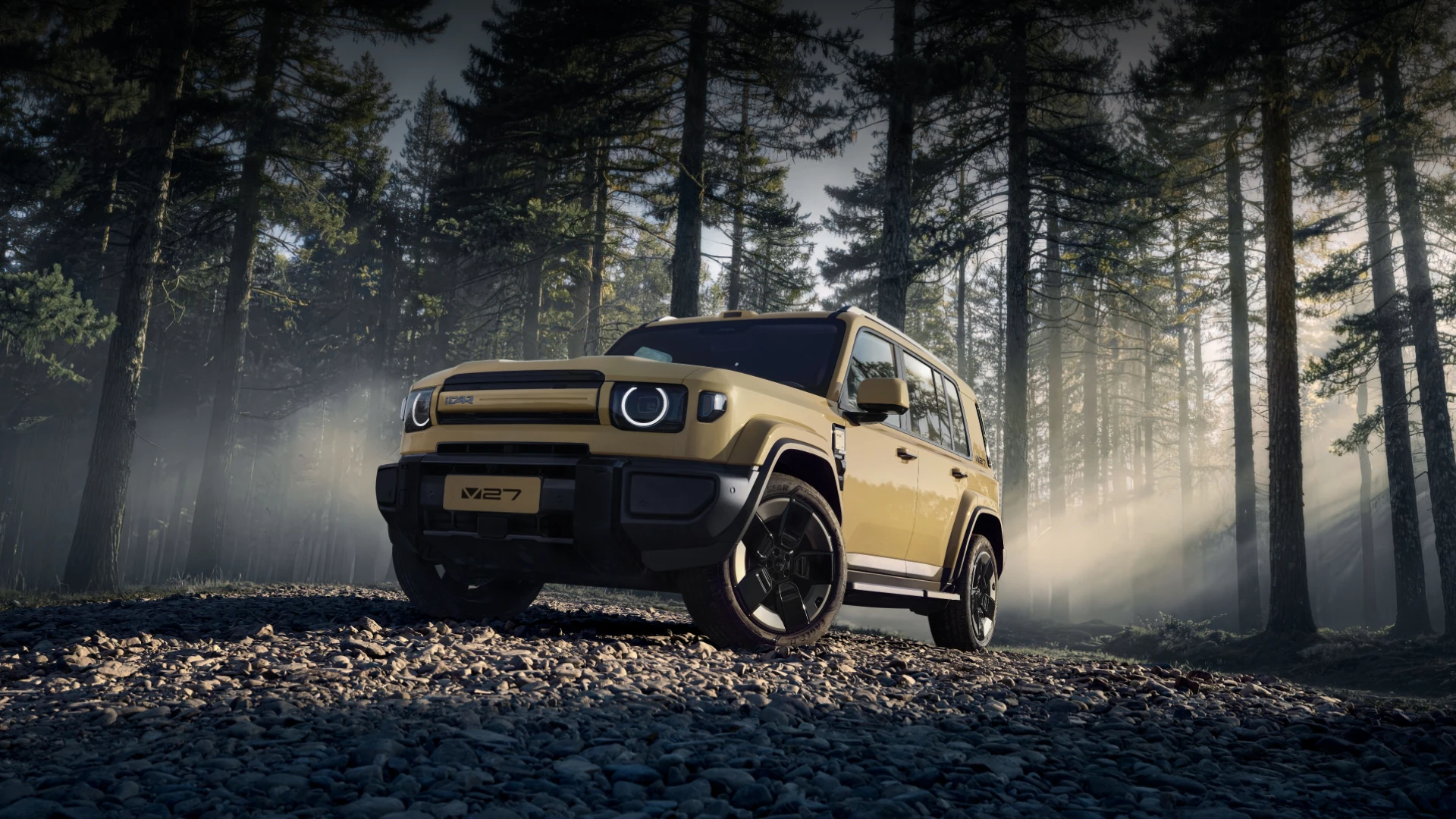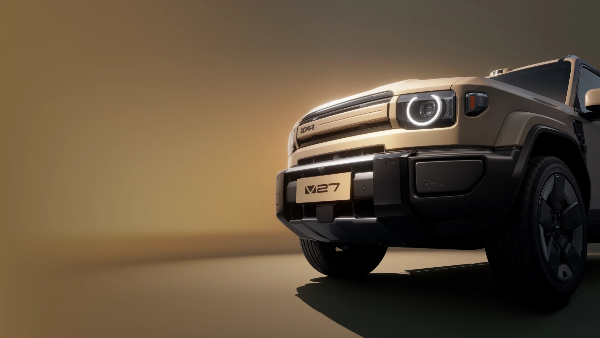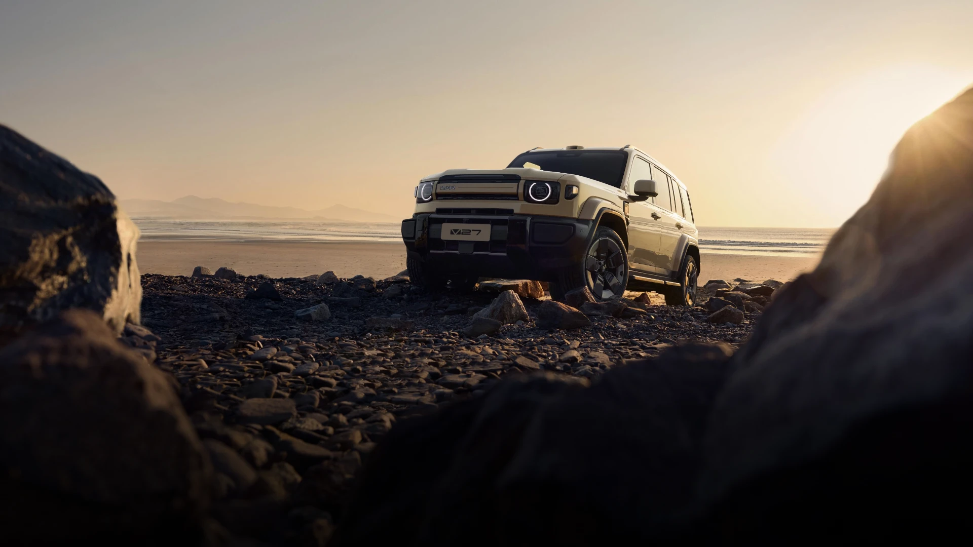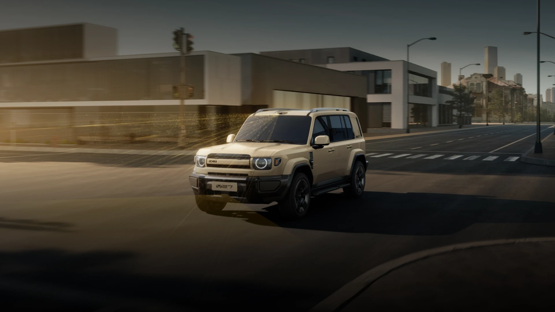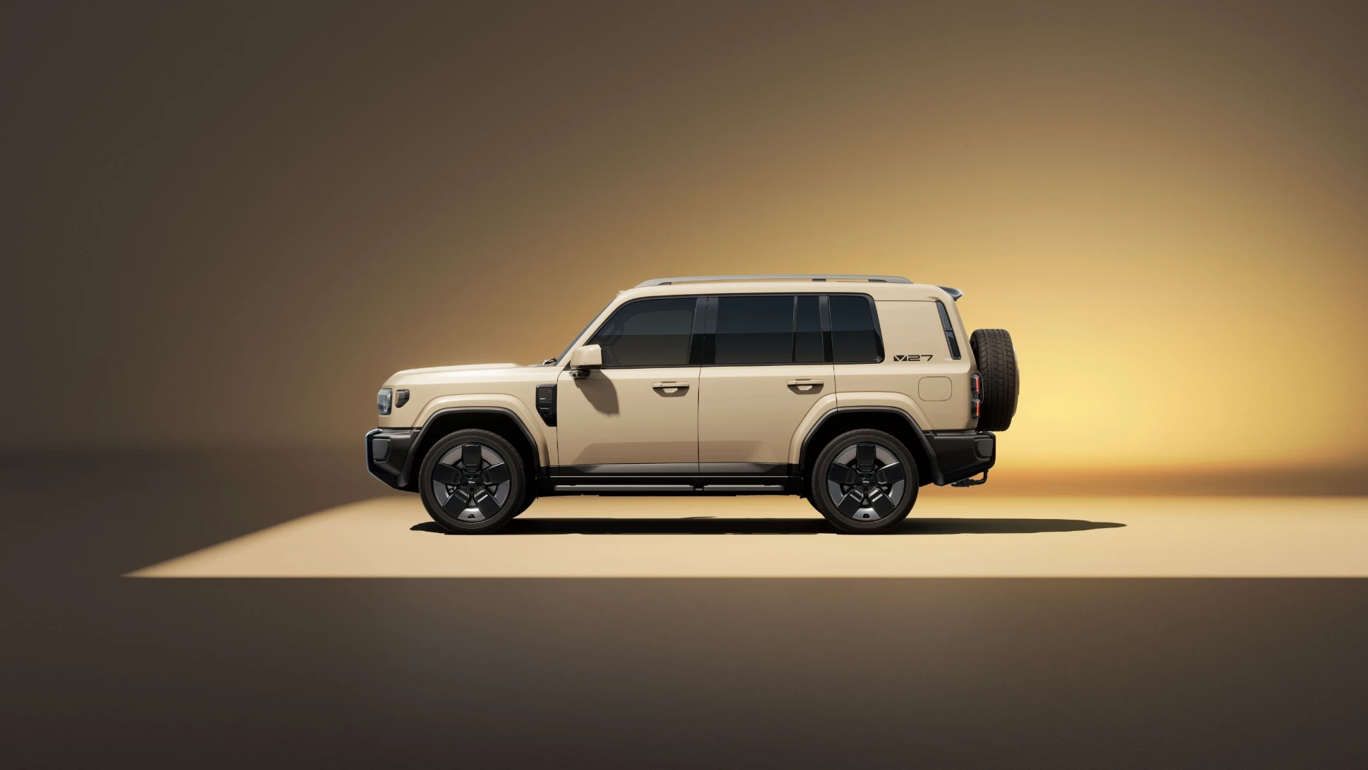 iCAR V27 ยังคงรักษาเอกลักษณ์การออกแบบสไตล์ “กล่องสี่เหลี่ยม” ที่ดูดุดันและแข็งแกร่ง ด้านหน้าโดดเด่นด้วยกระจังหน้าแบบแถบแคบที่จับคู่กับโคมไฟทรงเหลี่ยมและแถบไฟวงแหวน โดยใช้หลอดไฟ LED ทั้งระบบ พร้อมฟังก์ชันควบคุมไฟสูงอัจฉริยะ ตัวรถมีสีภายนอกให้เลือกมากถึง 7 สี ได้แก่ สีอูฐ, ดำ, เงิน, เทา, ขาว, น้ำเงิน และเหลือง