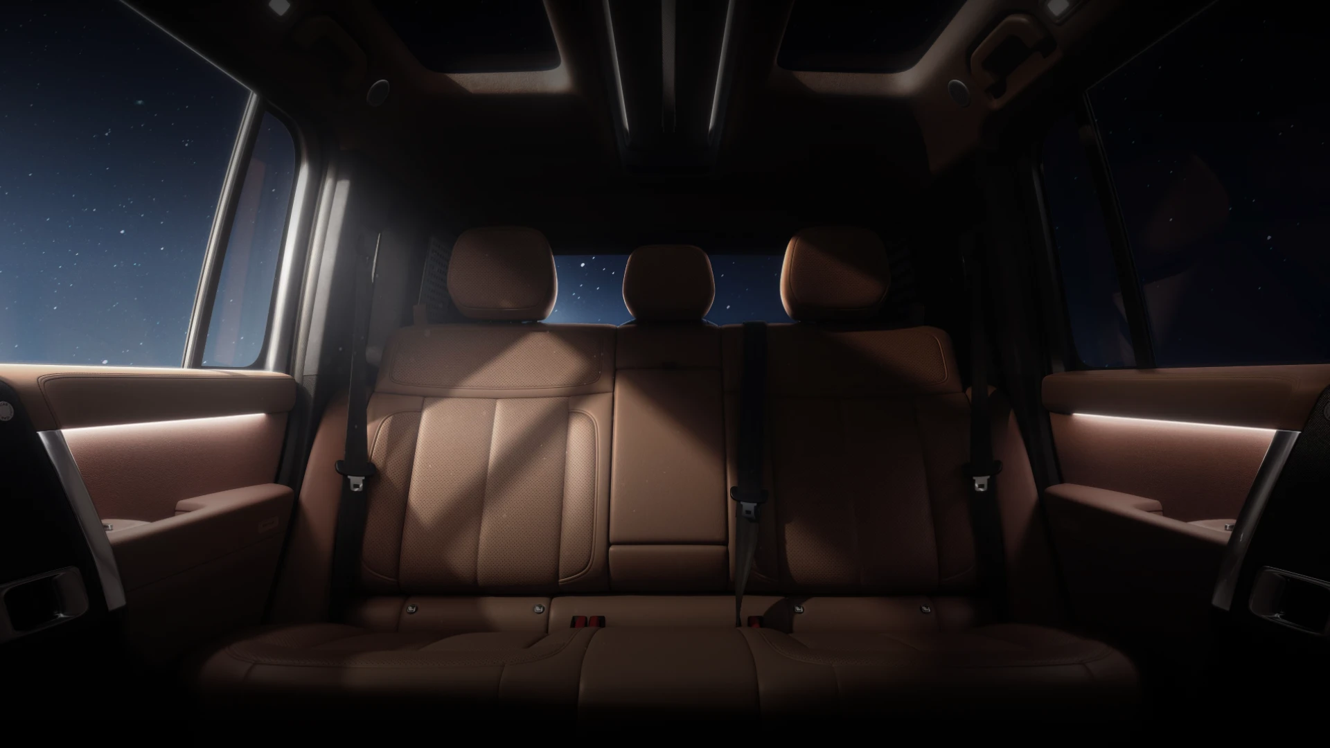 iCAR V27 มาพร้อมหลังคากระจกคู่สไตล์ “Starship Porthole” และเพดานหลังคา “Sky Island” ที่มีไฟสร้างบรรยากาศ (Ambient Light) แบบสะท้อนแสงรอบทิศทาง พร้อมจุดยึดขนาด 1/4 นิ้ว เพื่อรองรับการติดตั้งอุปกรณ์เสริม
