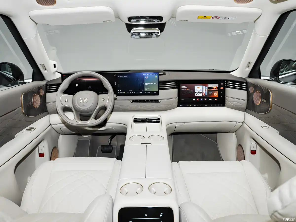 ห้องโดยสารของ IM LS9 ถูกออกแบบในคอนเซปต์ “หรู เงียบ เทคโนโลยีล้ำ” เน้นความสะดวกสบายในทุกแถว พร้อมงานวัสดุระดับพรีเมียม รถทั้งคันใช้กระจกสองชั้น เพิ่มความเงียบและลดเสียงรบกวนจากภายนอก เส้นสายภายในเน้นความเรียบหรู คล้ายรถซาลูนยุโรประดับไฮเอนด์ แต่ผสานเทคโนโลยีจอขนาดใหญ่และระบบควบคุมอัจฉริยะเต็มรูปแบบ
