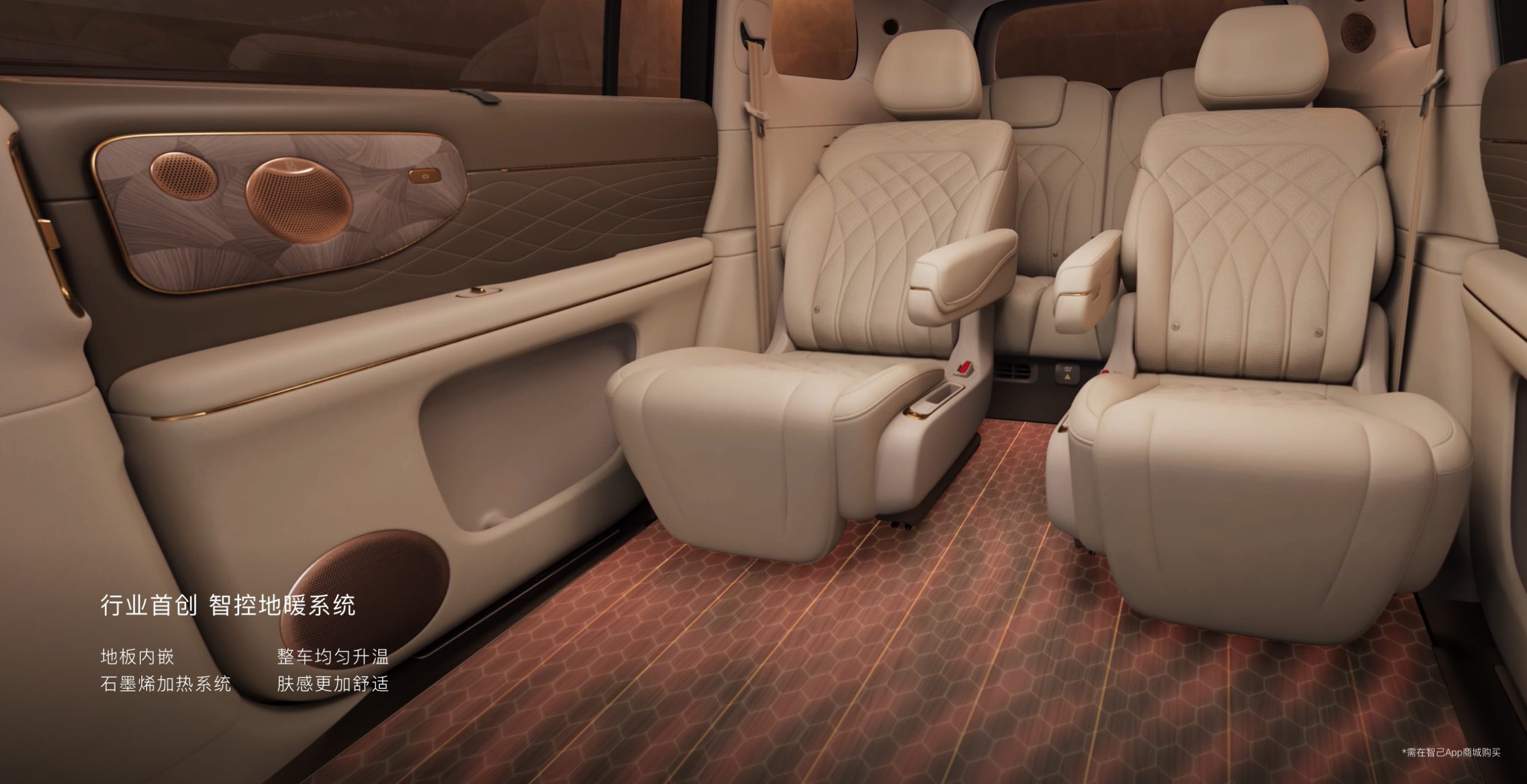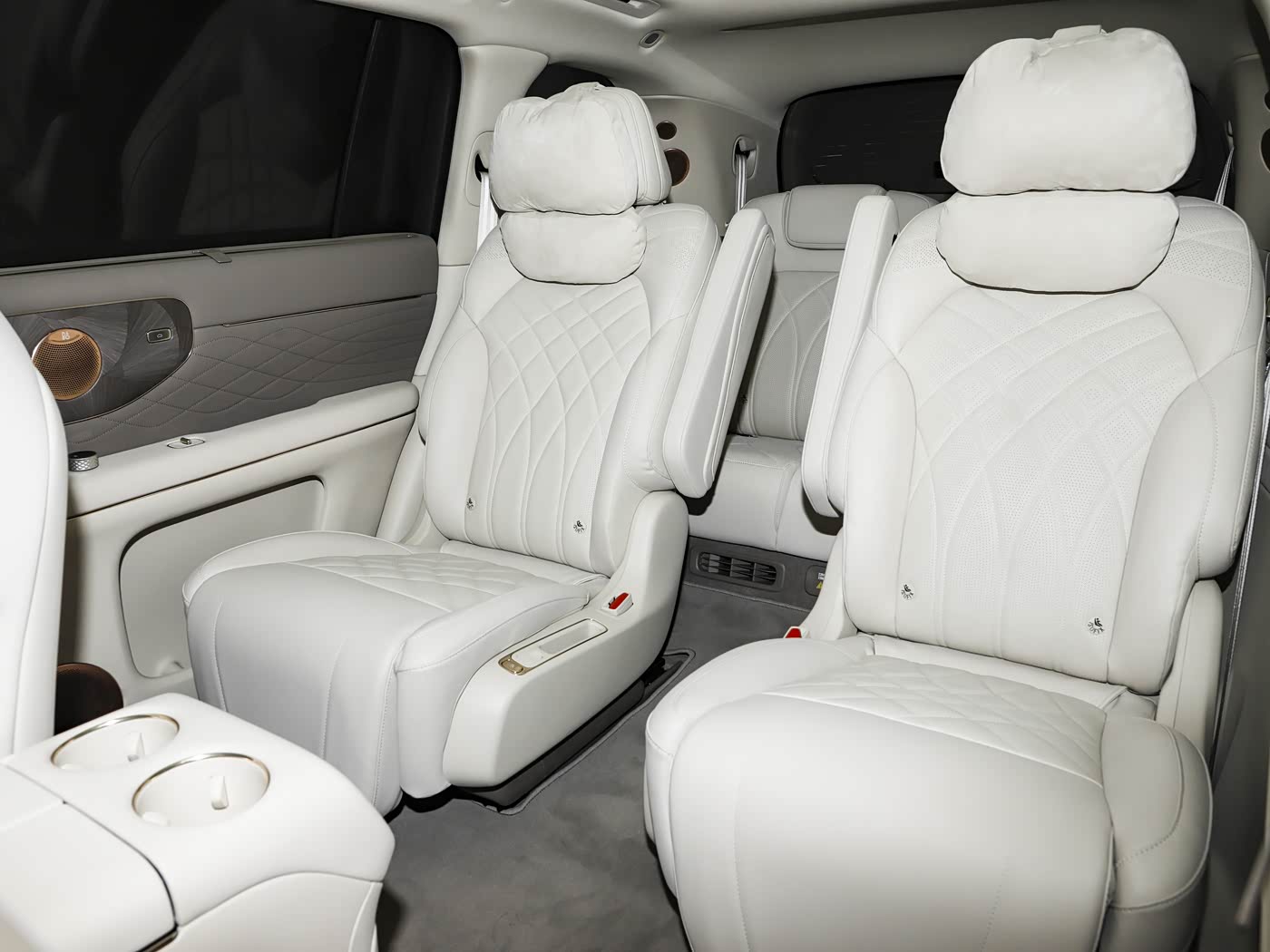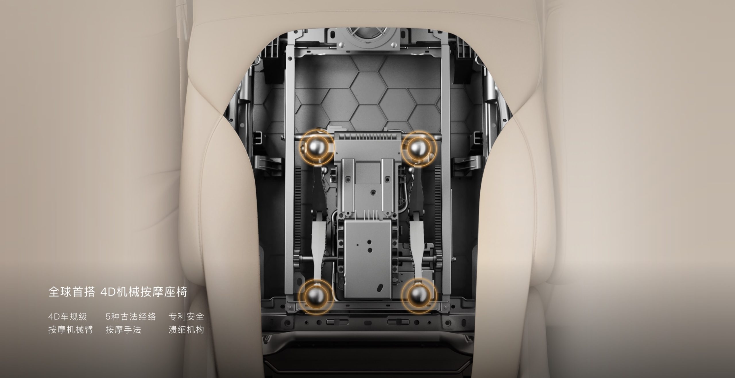 - เบาะขวาแถวสองมีฟังก์ชันนวดขั้นสูงเทียบเท่าผู้โดยสารชั้นหนึ่ง