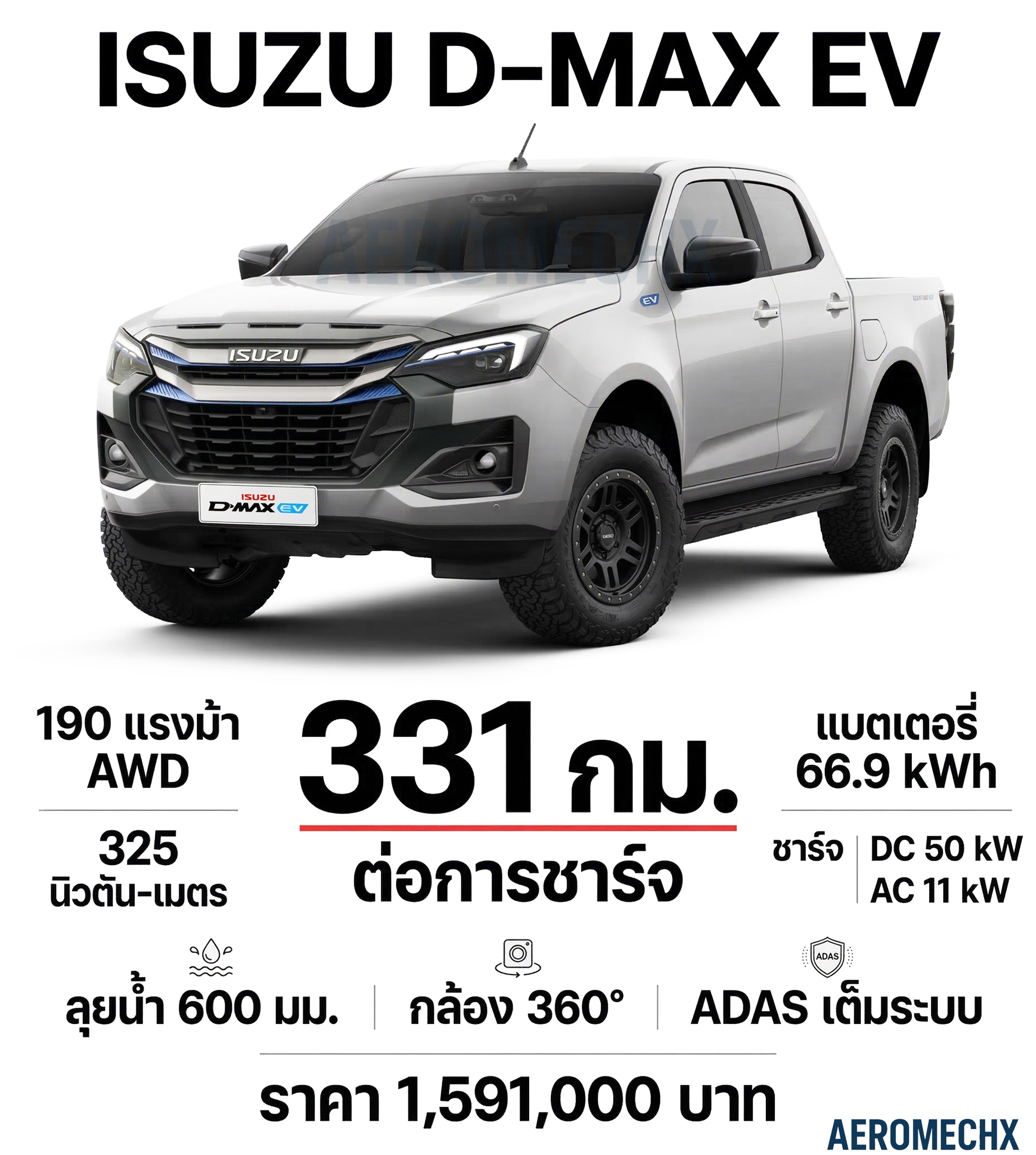 ISUZU เปิดตัว D-MAX EV ราคาเบาๆ 1.59 ล้านบาทในไทย 331 กม. NEDC