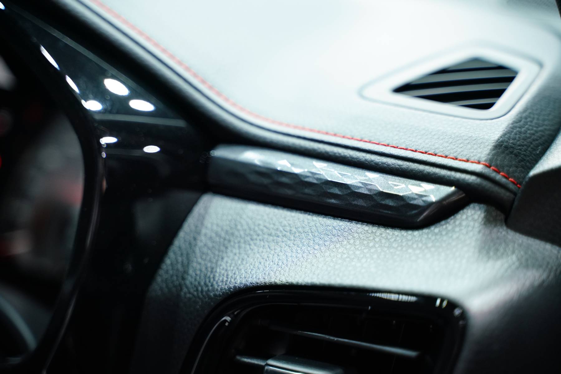 งานตกแต่งในห้องโดยสารเน้นโทนแดง-ดำ เพิ่มความรู้สึกเร้าใจแบบรถแข่ง