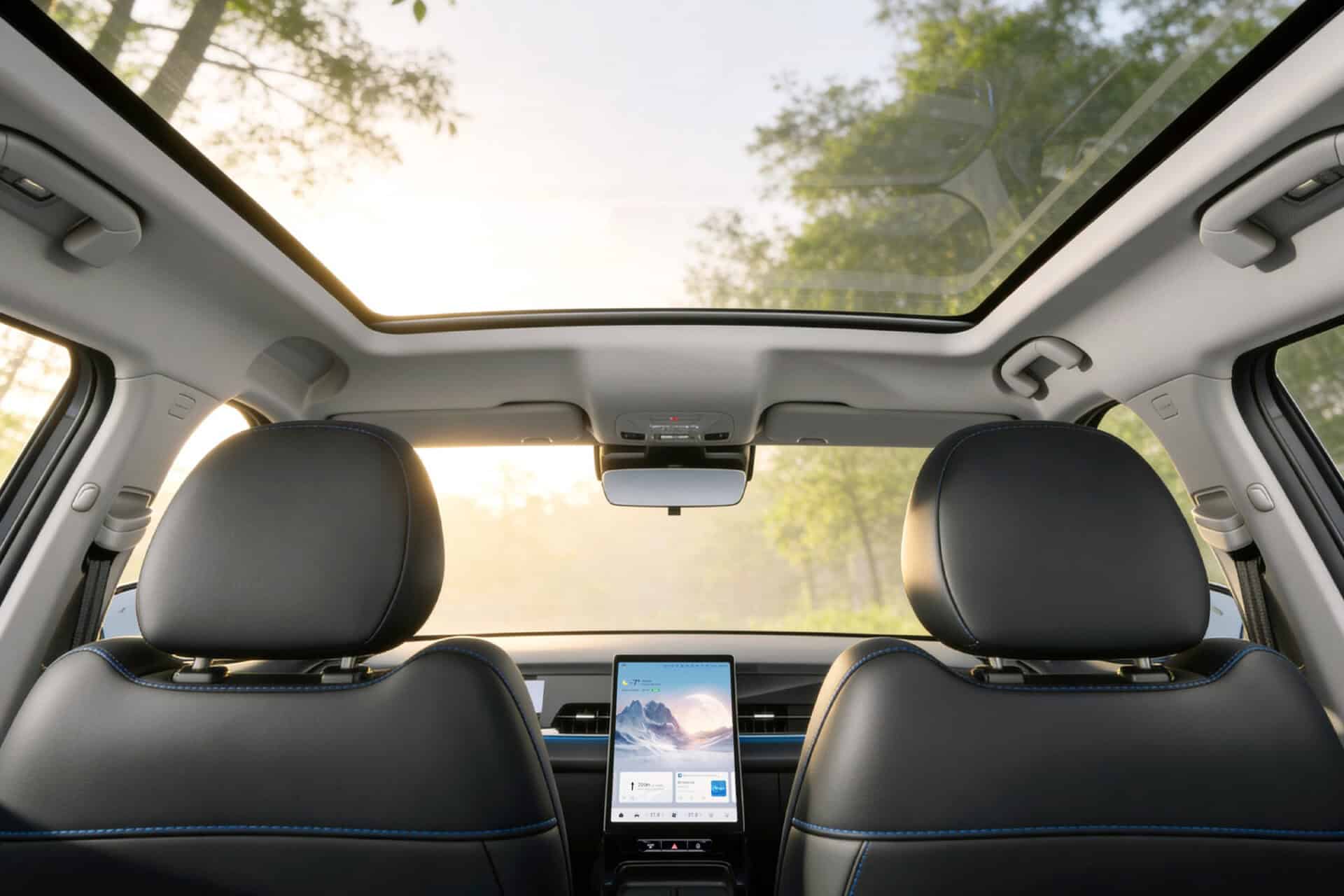 • หลังคากระจก: Panoramic Glass Roof แบบ Fixed ขนาดใหญ่ พร้อมม่านบังแดดที่เปิด-ปิดด้วยระบบไฟฟ้า