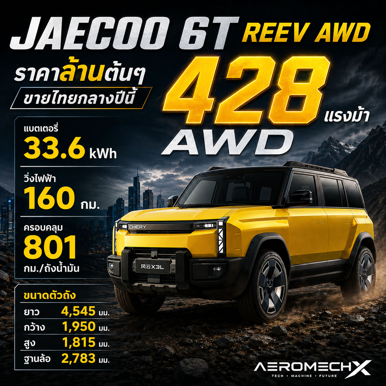 JAECOO 6T REEV ยืนยันขายไทยกลางปีนี้ ระยะวิ่งไฟฟ้า 160 กม. AWD 428 แรงม้า