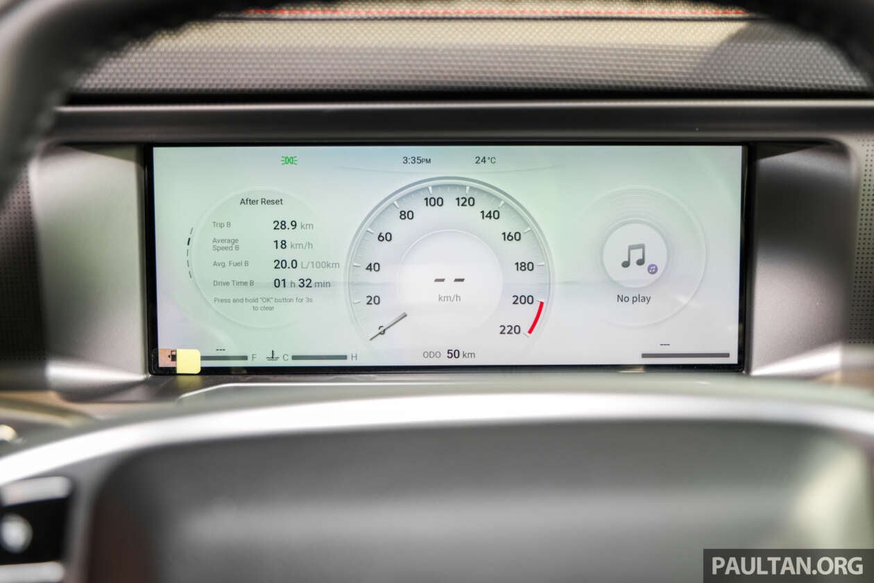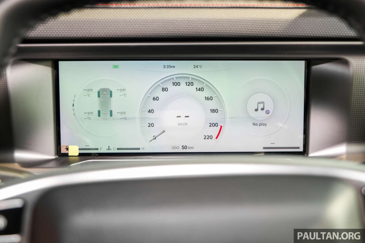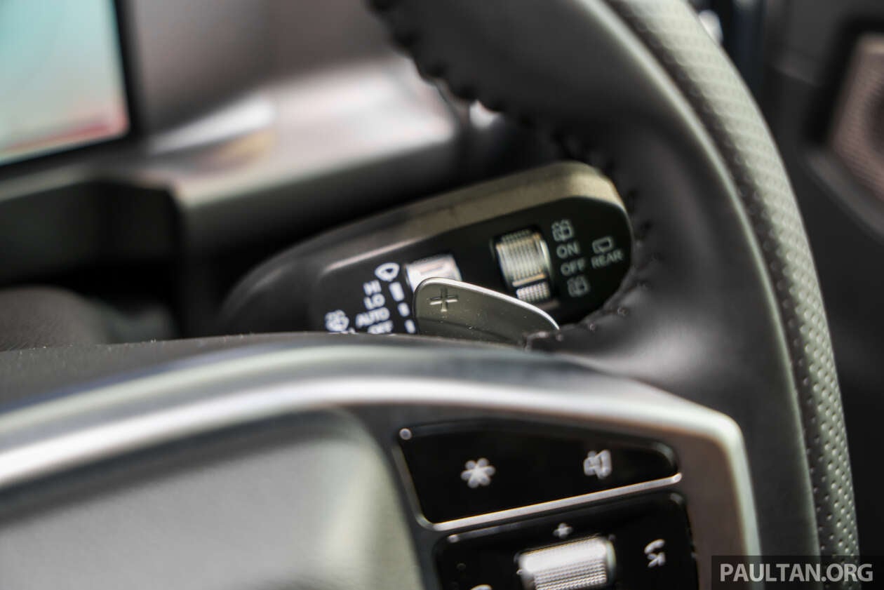 อีกจุดที่อัปเดตคือ ปุ่มหมุนเลือกโหมดการขับขี่ เพิ่มจำนวนโหมดเป็น 7 โหมด จากเดิม 3 โหมดในรถพรีวิว ชี้ให้เห็นว่าซอฟต์แวร์/คาลิเบรตระบบขับเคลื่อนถูกปรับให้ครอบคลุมสถานการณ์ใช้งานมากขึ้น