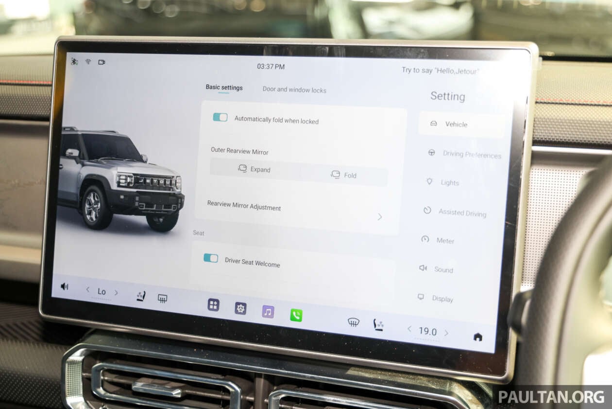 Jetour ระบุว่าเวอร์ชันจำหน่ายจริงในมาเลเซียจะมาพร้อมอุปกรณ์หลักดังนี้: