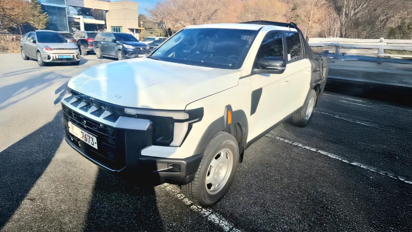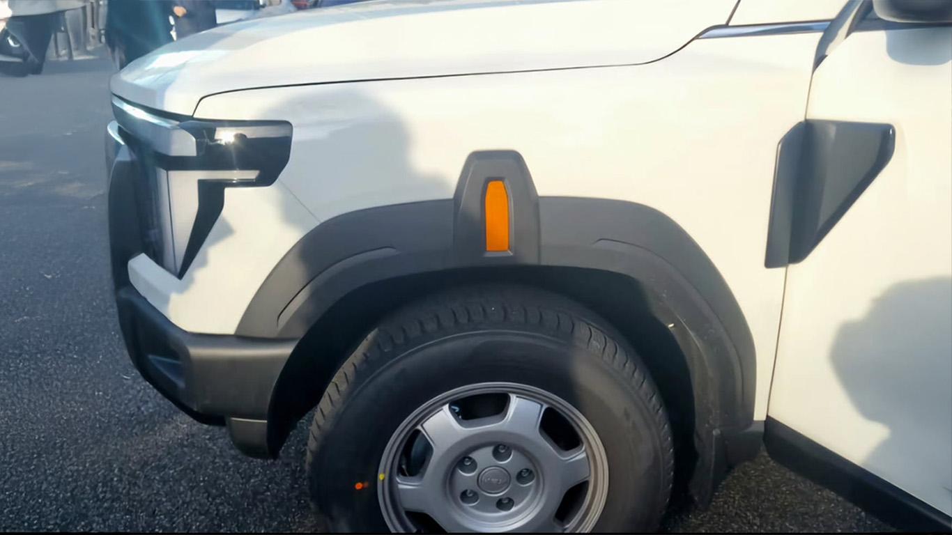 ภาพของรุ่นพื้นฐานที่ถูกจับได้มาในสีขาว แสดงให้เห็นการเน้นความสมบุกสมบันแบบรถใช้งานจริง มาพร้อมล้อเหล็ก กันชนหน้า–หลังสีดำไม่พ่นสี กรอบกระจก และฝาครอบกระจกมองข้างสีดำทั้งหมด ด้านข้างตัวรถยังพบสันนูนบนฝากระโปรง และแผ่นพลาสติกตกแต่งบริเวณซุ้มล้อหน้าในสไตล์เดียวกับ Ford Ranger ขณะที่มือจับประตูและแนวหลังคาลาดเอียงมีความใกล้เคียงกับ Musso EV