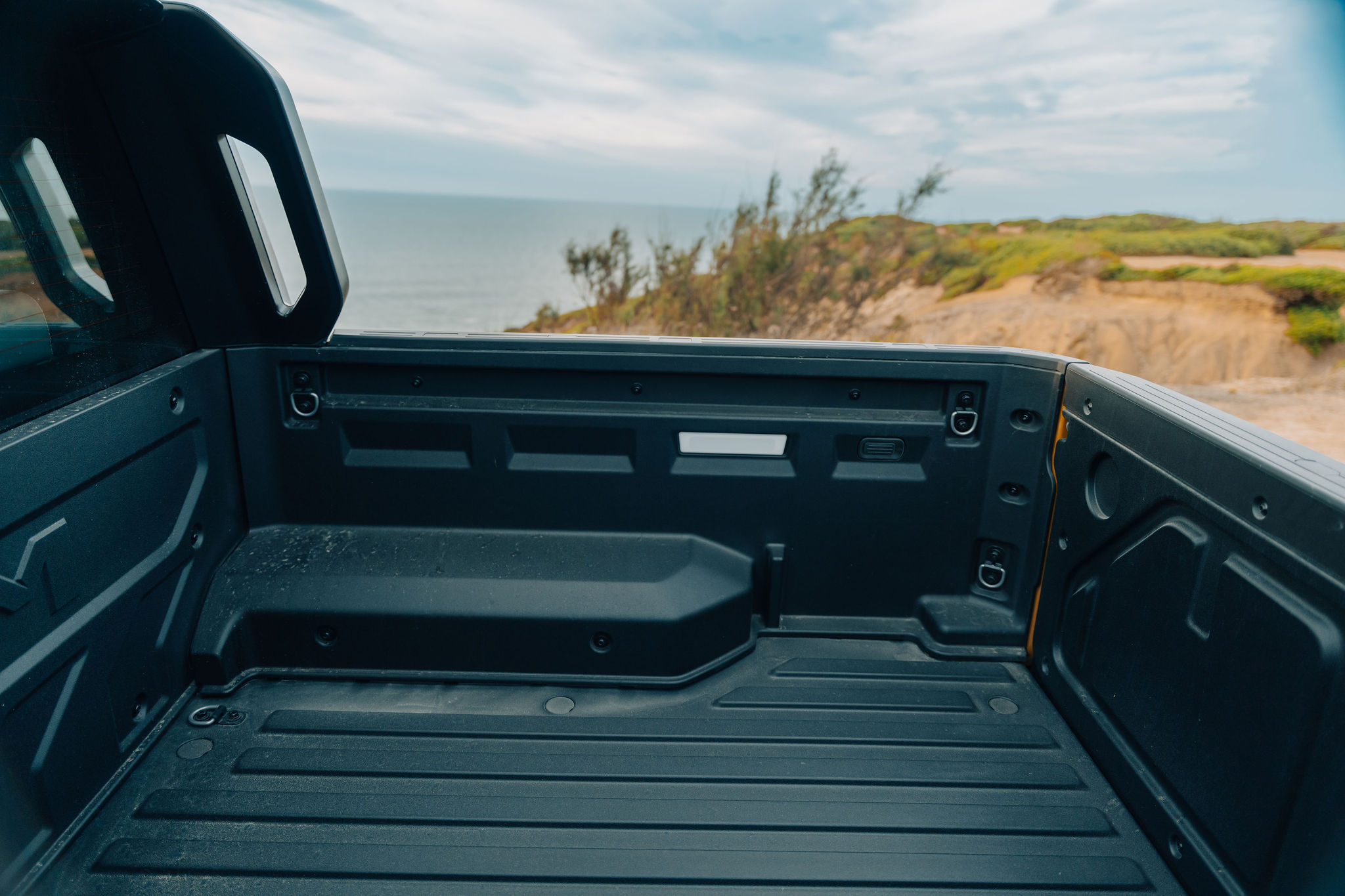 ด้านท้ายมาพร้อม กระบะท้ายพร้อมไลเนอร์และไฟส่องสว่าง, จุดยึดสัมภาระ 8 ตำแหน่ง เหมือนรุ่นเครื่องดีเซลเดิม