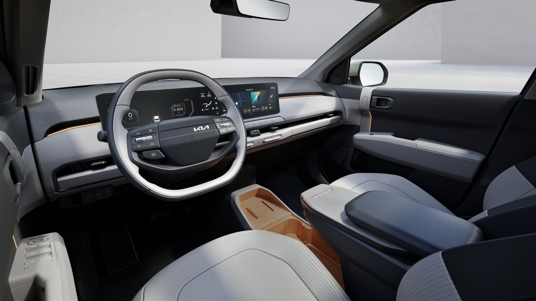 การออกแบบภายในของ EV3 มีห้องโดยสารกว้างขวางที่สามารถรองรับคนได้ 5 คนอย่างสะดวกสบาย Kia ได้สร้างห้องโดยสารที่เน้นประโยชน์ใช้สอยและมีประสิทธิภาพ ซึ่งให้บรรยากาศเหมือนพื้นที่อยู่อาศัยที่น่าดึงดูดใจ ซึ่งออกแบบมาเพื่อให้ผู้โดยสารเพลิดเพลินในทุกการเดินทางและในขณะที่รถกำลังชาร์จ