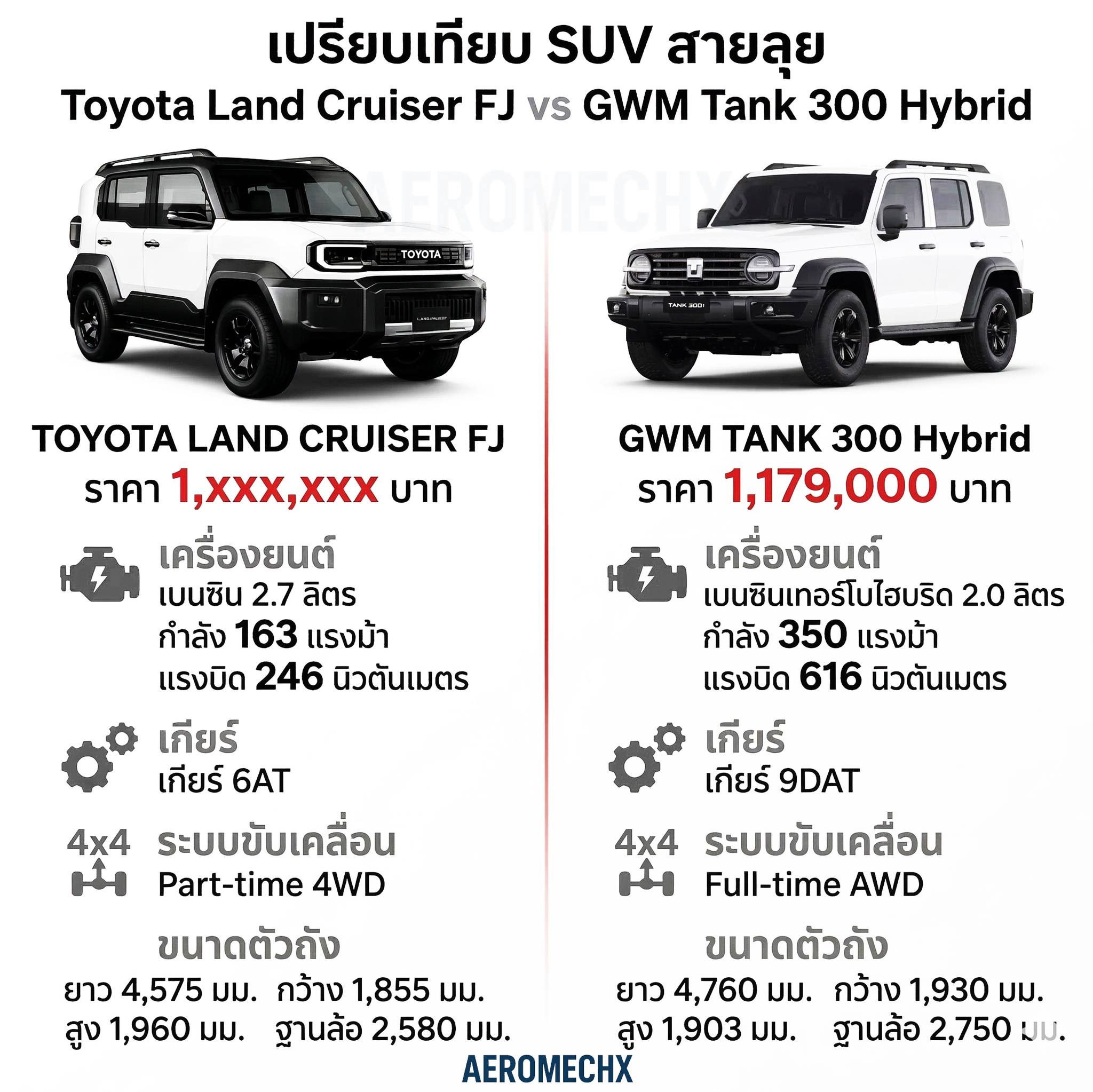 - ล็อกเพดานราคา: เพื่อวางตำแหน่งเป็น “Entry Land Cruiser” ที่เข้าถึงง่าย ไม่ให้ราคาไปทับไลน์กับรุ่นพี่อย่าง Prado หรือ LC300