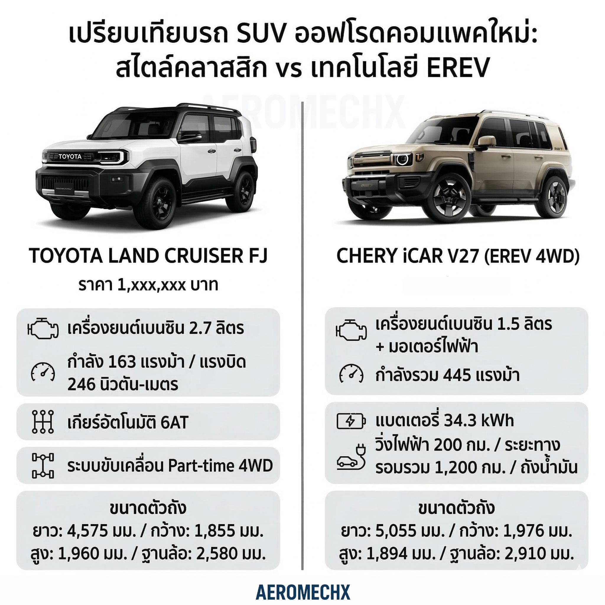 รถรุ่นนี้คือคำตอบของคนที่มองหา “แลนด์ครูเซอร์ที่ใช้ในเมืองได้จริง” ด้วยความยาวตัวถังเพียง 4.5 เมตร และรัศมีวงเลี้ยวที่แคบ แต่ในวันหยุดก็พร้อมเปลี่ยนเป็นสายลุยด้วยโครงสร้างแชสซีเหล็กและระบบขับเคลื่อน 4WD แท้ๆ สำหรับใครที่รอ เครื่องยนต์ดีเซล มีรายงานว่าอาจจะต้องรอติดตามในช่วงปี 2027 ครับ