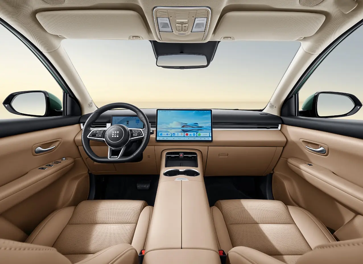 ภายในห้องโดยสารมีให้เลือก 2 สีได้แก่ สีน้ำตาลวอลนัทและสีดำออบซิเดียน มาพร้อมกับแผงหน้าปัด Full LCD หน้าจอควบคุมส่วนกลางแบบลอยขนาด 15.6 นิ้ว รองรับ HUAWEI HiCar 4.0 รถใหม่มาพร้อมกับพวงมาลัยมัลติฟังก์ชั่นแบบสามก้าน คอนโซลกลางมีที่วางแก้วและแผงชาร์จโทรศัพท์มือถือ ลำโพง 13 ตำแหน่ง