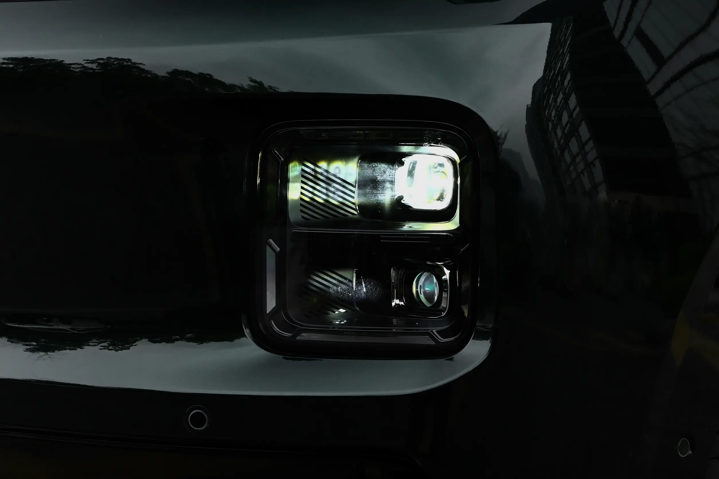 - ระบบไฟหน้าอัจฉริยะ: ไฟหน้า Million-pixel DLP สามารถฉาย “พรมแสง” (Dynamic Light Carpet) ลงบนพื้นถนนและฉายกราฟิกโต้ตอบได้ พร้อมระบบไฟสูงอัตโนมัติ