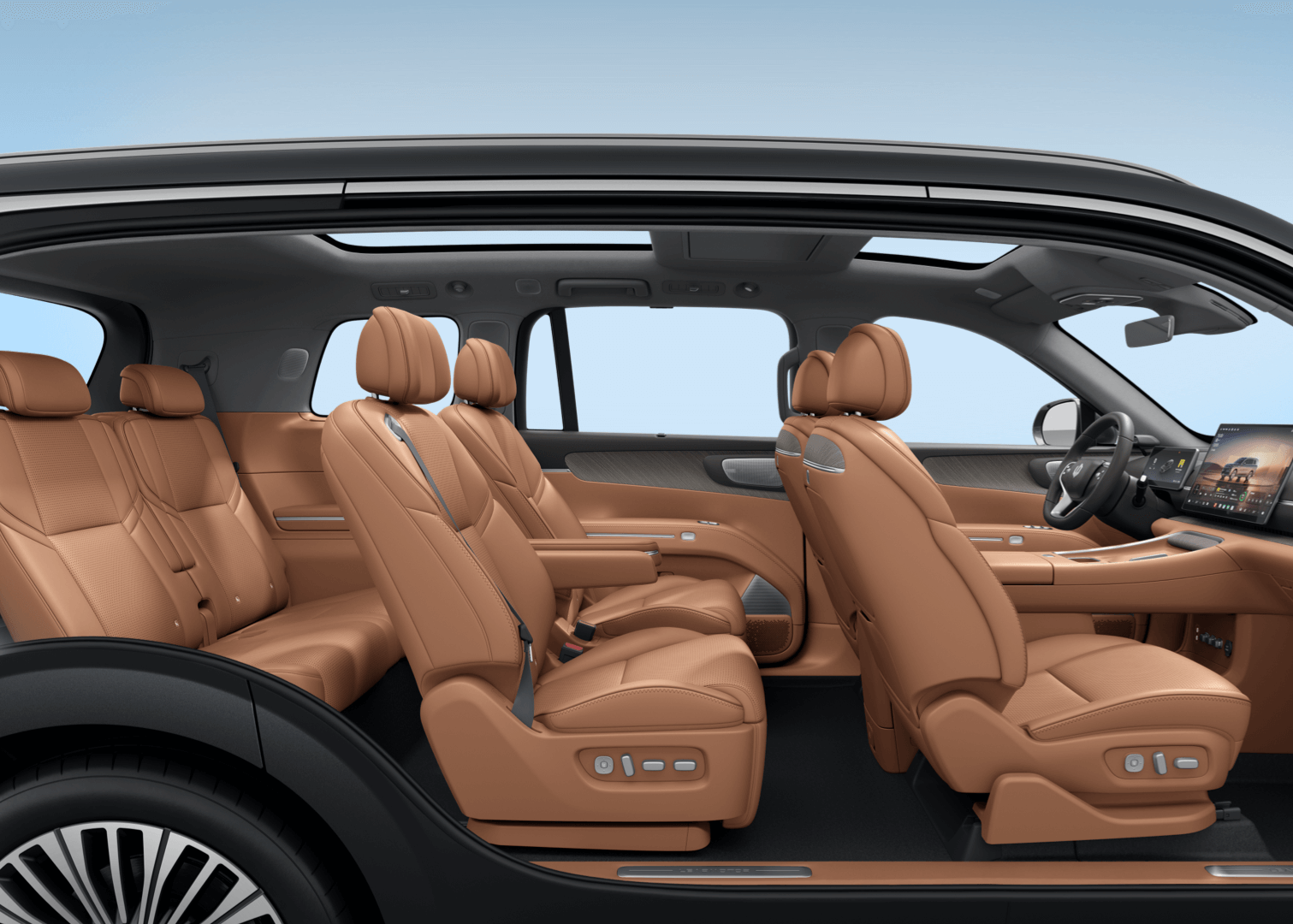 - ความสะดวกสบายระดับเฟิร์สคลาส: ตู้เย็นขนาด 8.1 ลิตร (ปรับอุณหภูมิได้ -6°C ถึง 50°C), ที่ชาร์จมือถือไร้สาย 50W, ม่านบังแดดไฟฟ้าสำหรับแถวสองและสาม และระบบน้ำหอมปรับอากาศ 3 กลิ่น