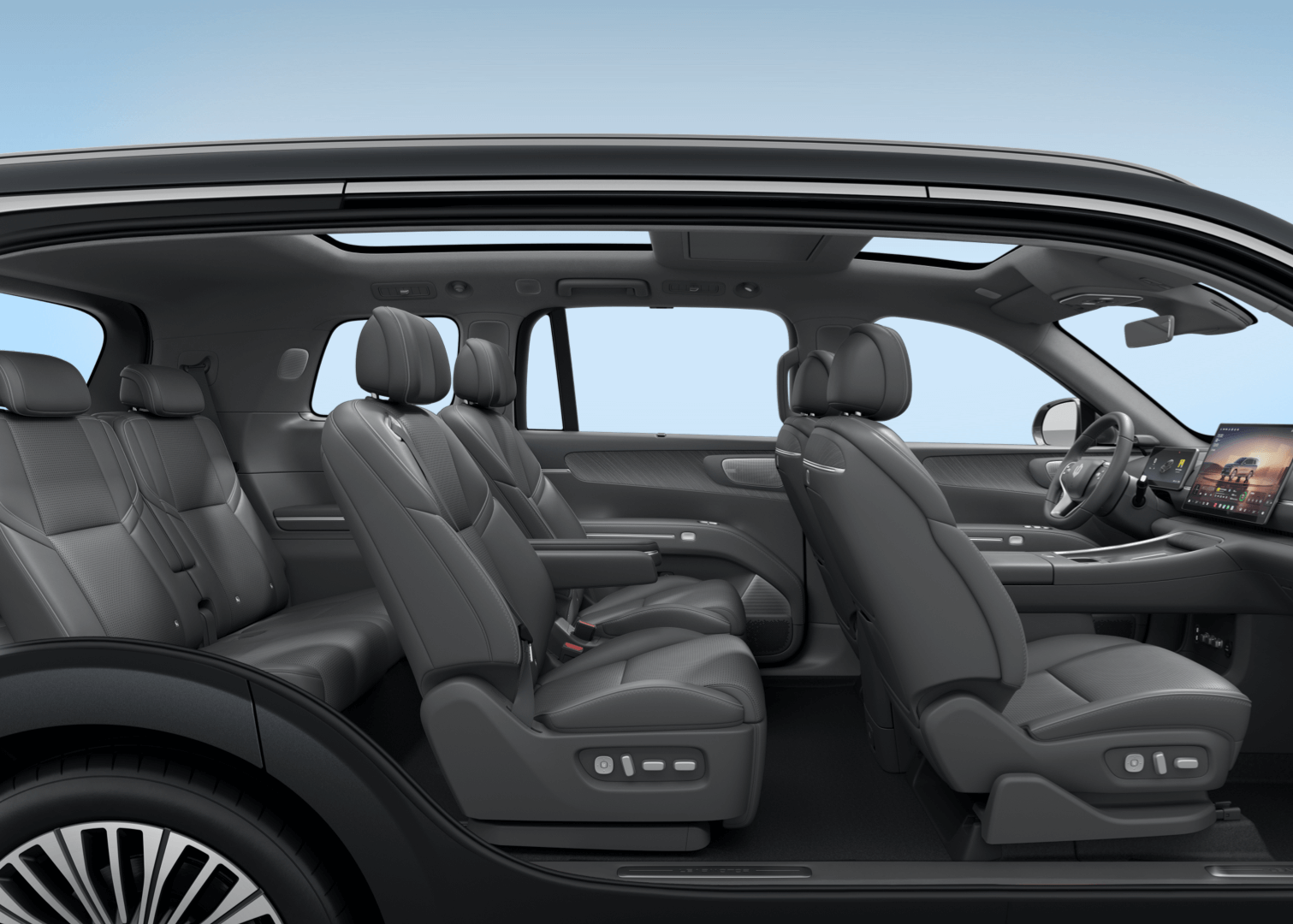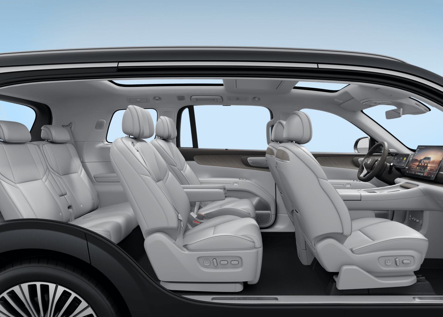 - หน้าจอด้านหลัง: จอความบันเทิงเพดานขนาด 21.4 นิ้ว ความละเอียด 3K พร้อมจอควบคุมมัลติฟังก์ชันขนาด 6 นิ้วสำหรับผู้โดยสารแถวสอง