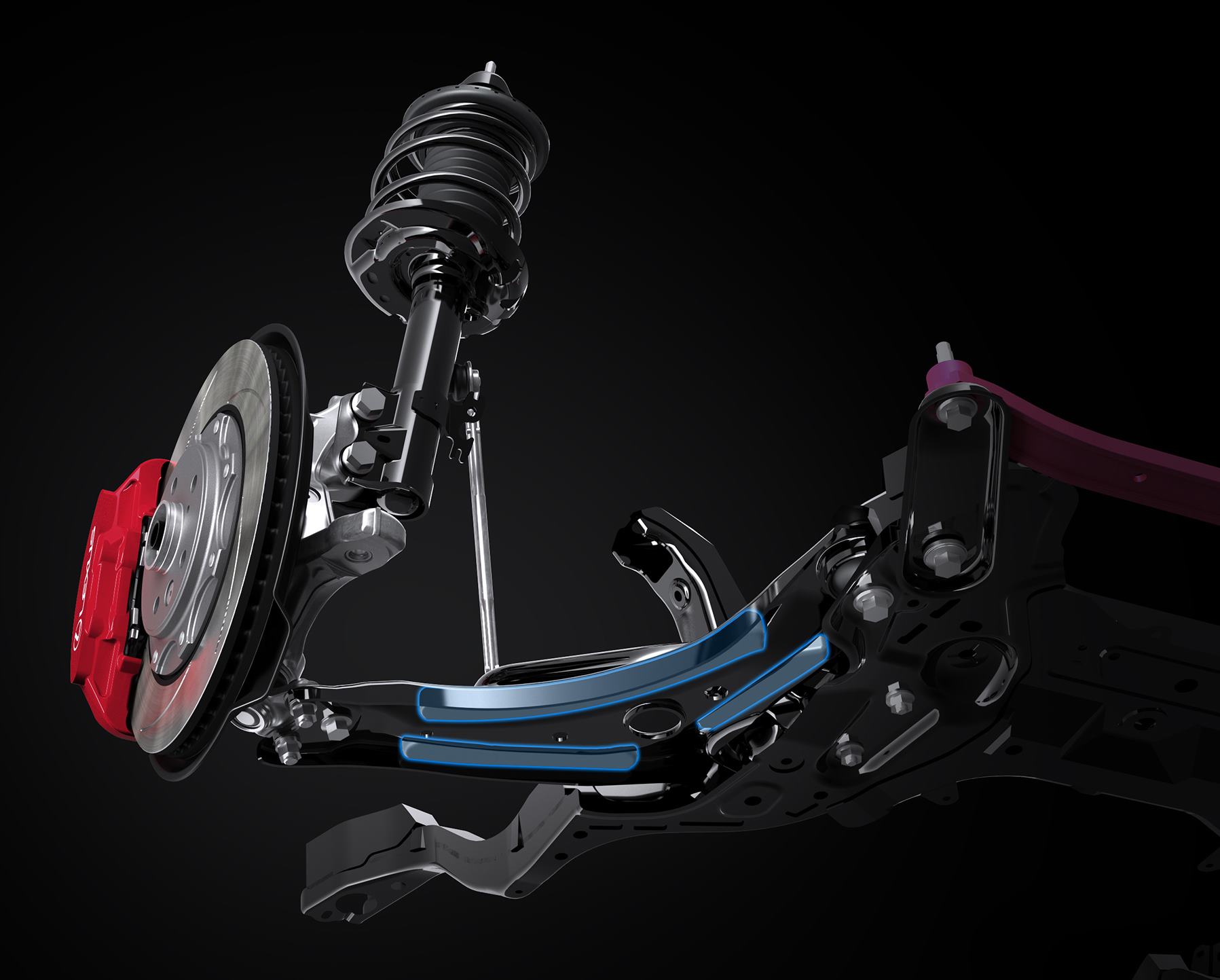LBX Morizo RR เป็นระบบขับเคลื่อนสี่ล้อเท่านั้น ใช้ล้ออัลลอยด์ขนาด 19 นิ้วพร้อมยางขนาด 235/45 R19 และมีน้ำหนัก 1,440 กก. พร้อมเกียร์ธรรมดา หากเลือกเกียร์อัตโนมัติจะมีน้ำหนักเพิ่ม 30 กก. ที่น่าสนใจคือรถรุ่นสปอร์ตรุ่นนี้กว้างกว่ารุ่นไฮบริด LBX ทั่วไป 15.2 มม. และเตี้ยกว่า 10.16 มม.
