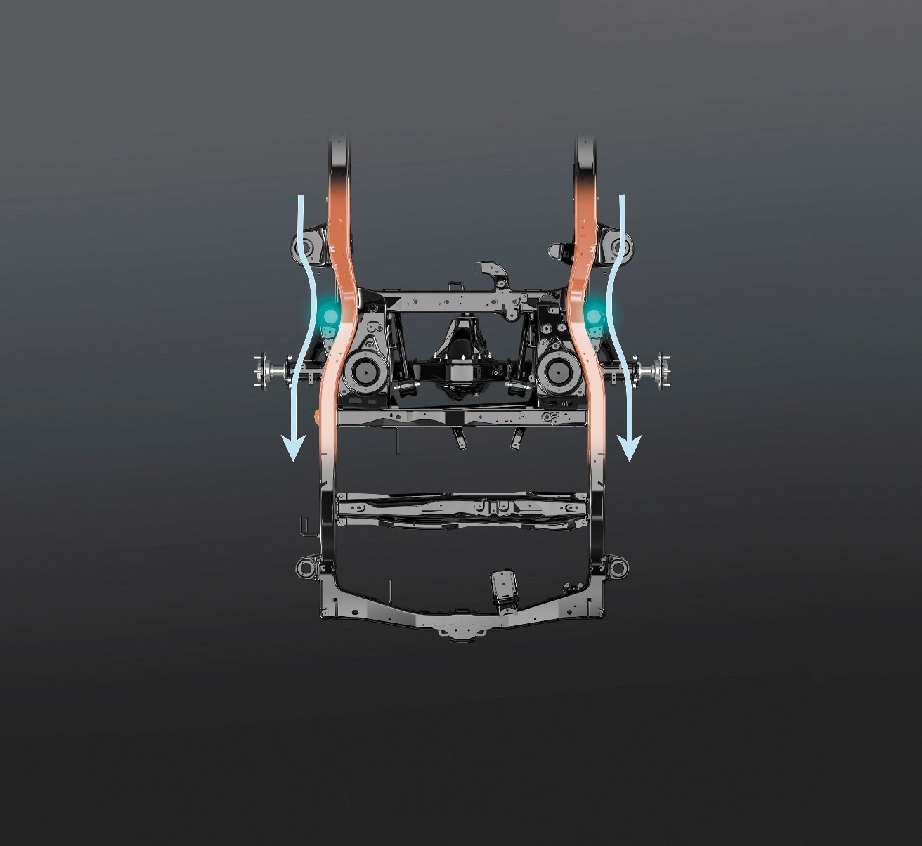 - ปรับระดับตัวรถอัตโนมัติ ให้เหมาะกับความเร็วและสภาพถนน