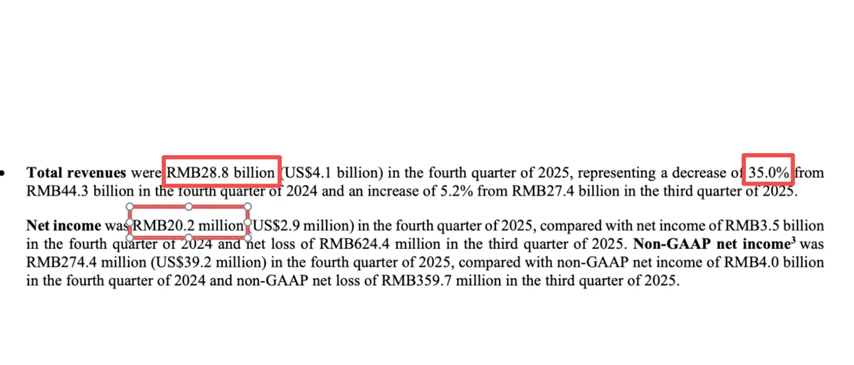 รายงานจาก Autohome เผยให้เห็นว่าในไตรมาสที่ 4 ที่ผ่านมา Li Auto ทำรายได้ไปประมาณ 2.88 หมื่นล้านหยวน ซึ่งหากมองเผินๆ อาจดูเยอะ แต่เมื่อเทียบกับช่วงเวลาเดียวกันของปีก่อน มันคือการลดลงถึง 35%