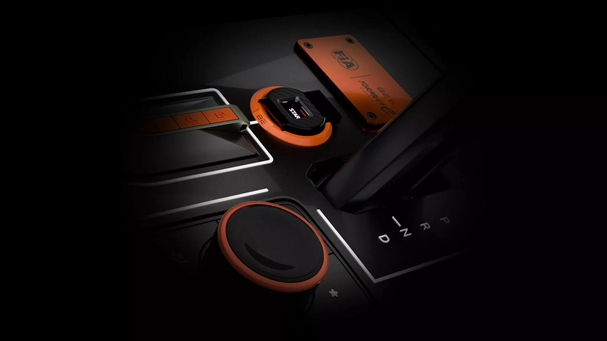 • ใช้โทนสีหลักเป็นดำ ตัดด้วยแถบตกแต่งสีFirestorm Orange ตามแผงประตู คอนโซล และเบาะนั่ง