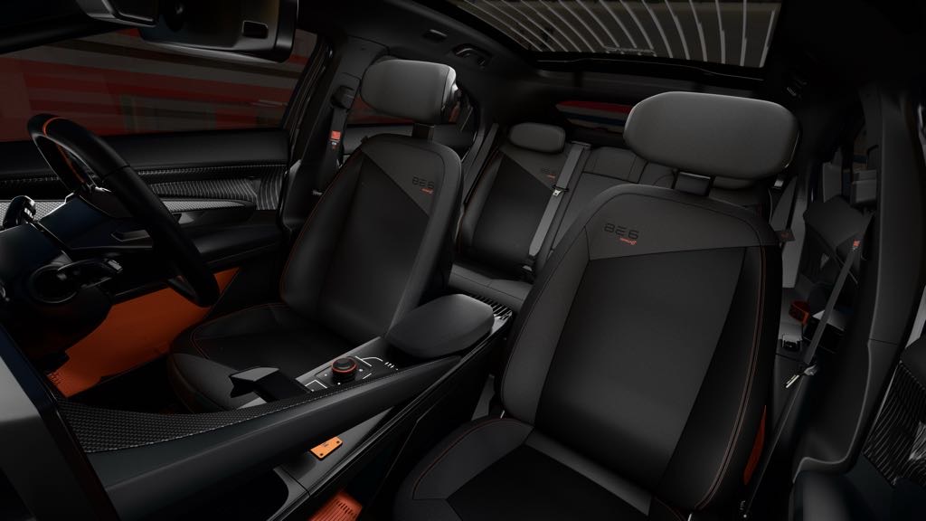 ภายในห้องโดยสารของ BE6 Formula E Edition ถูกออกแบบให้สะท้อนบรรยากาศสนามแข่ง พร้อมลูกเล่นเฉพาะรุ่นที่เพิ่มความพรีเมียมและความพิเศษ