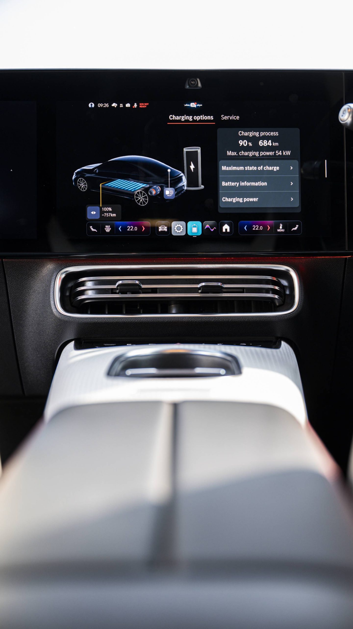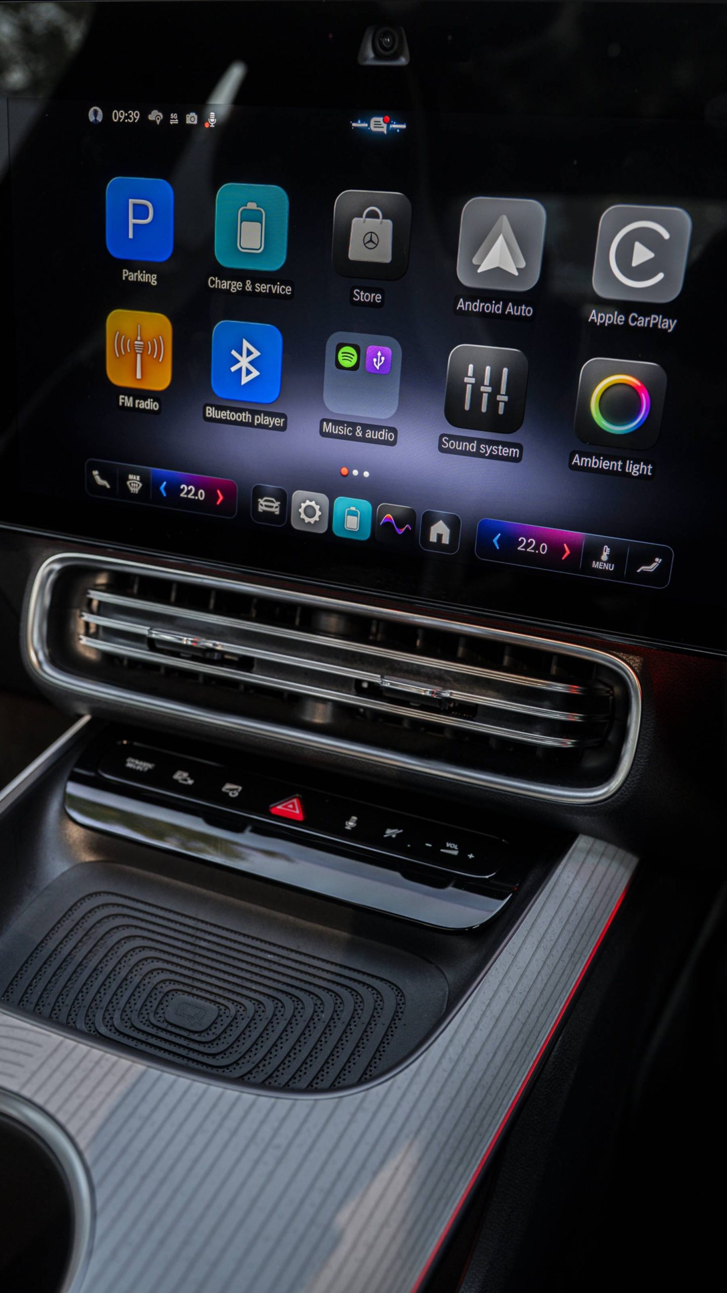 - การเชื่อมจอ (screen integration) ถูกทำให้ดูเป็นแผงเดียวต่อเนื่องกับแผงควบคุม (seamless integration) — ขอบจอและเส้นสายบนแผงควบคุมจะกลมกลืน และลดปุ่ม /สวิตช์ให้เหลือน้อยที่สุด