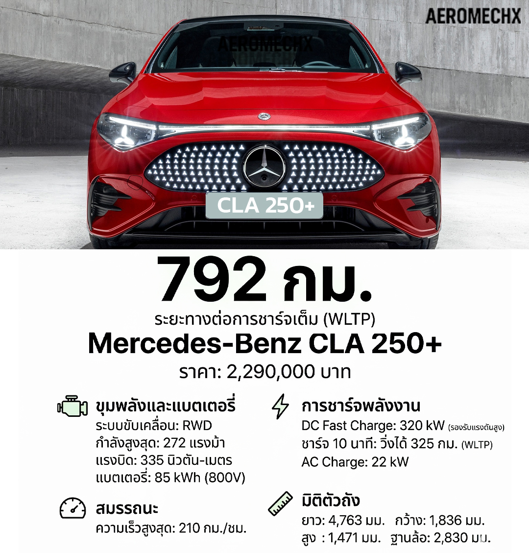 เปิดขายไทย 2,290,000 บาท Mercedes-Benz CLA 250+ 792 กม./ชาร์จ WLTP หรือประมาณ 887 กม. NEDC
