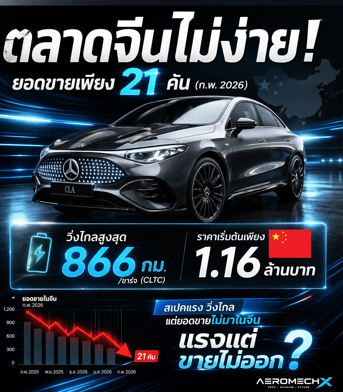 ยอดขายแค่ 21 คันในจีน ก.พ. 2026 : ความหวังใหม่ ? แม้ราคาเริ่มเพียง 1.16 ล้านบาท