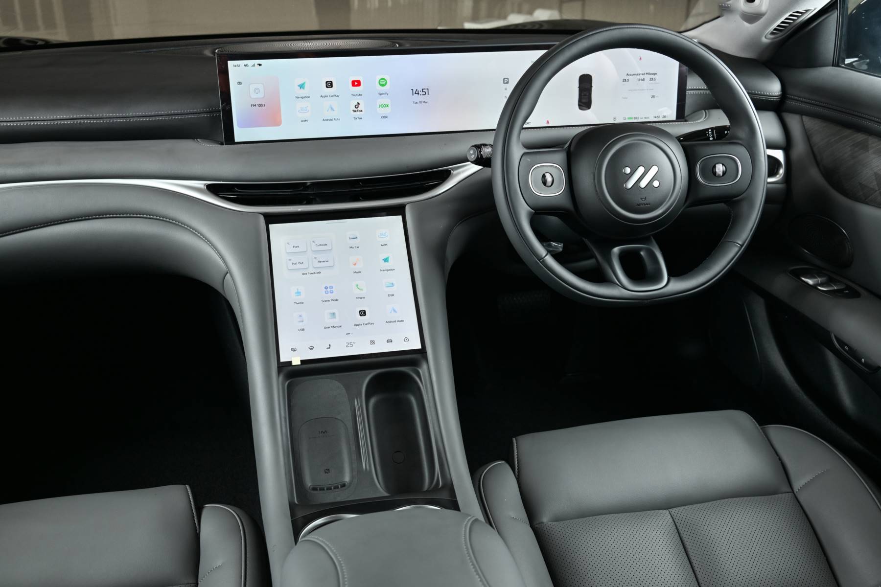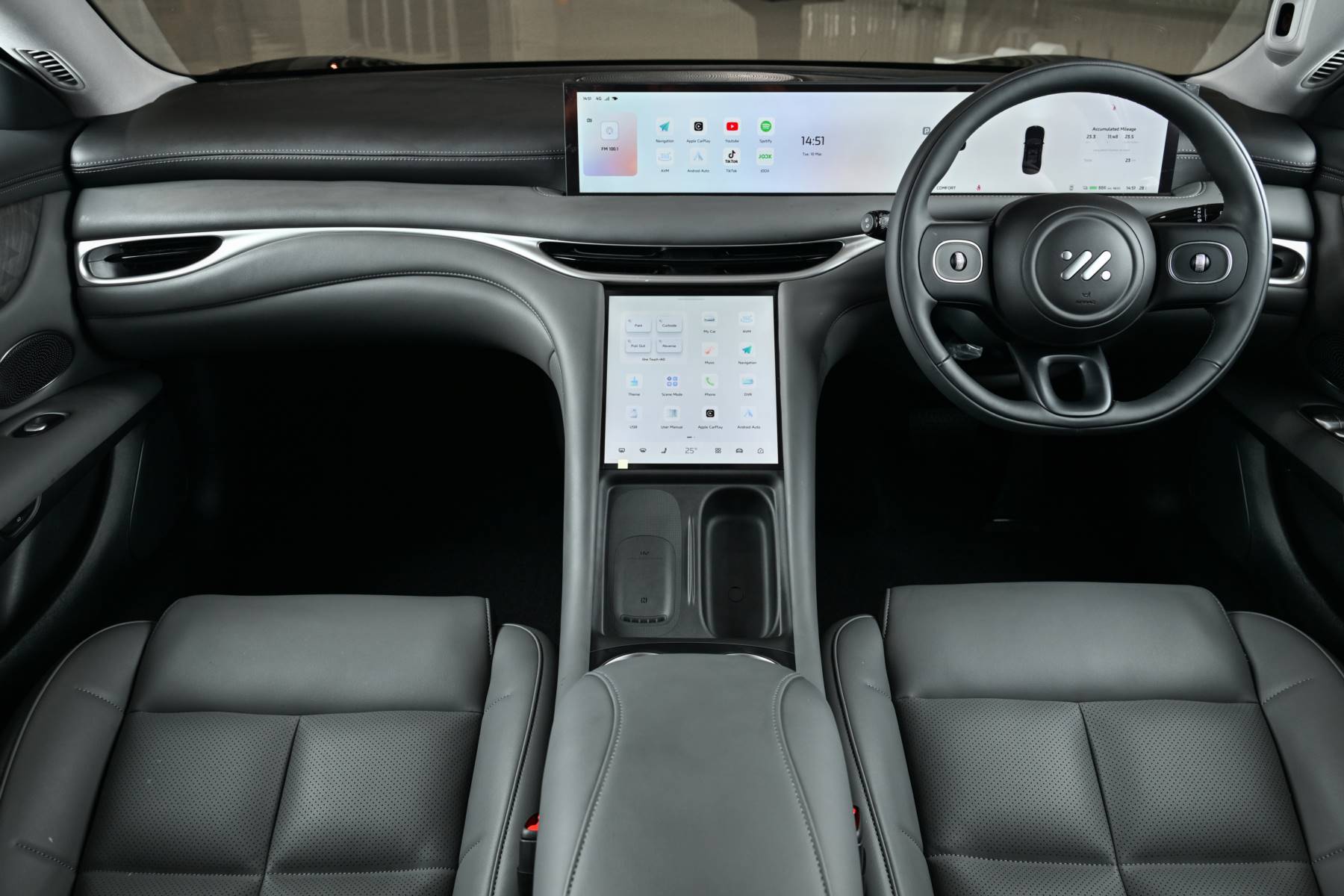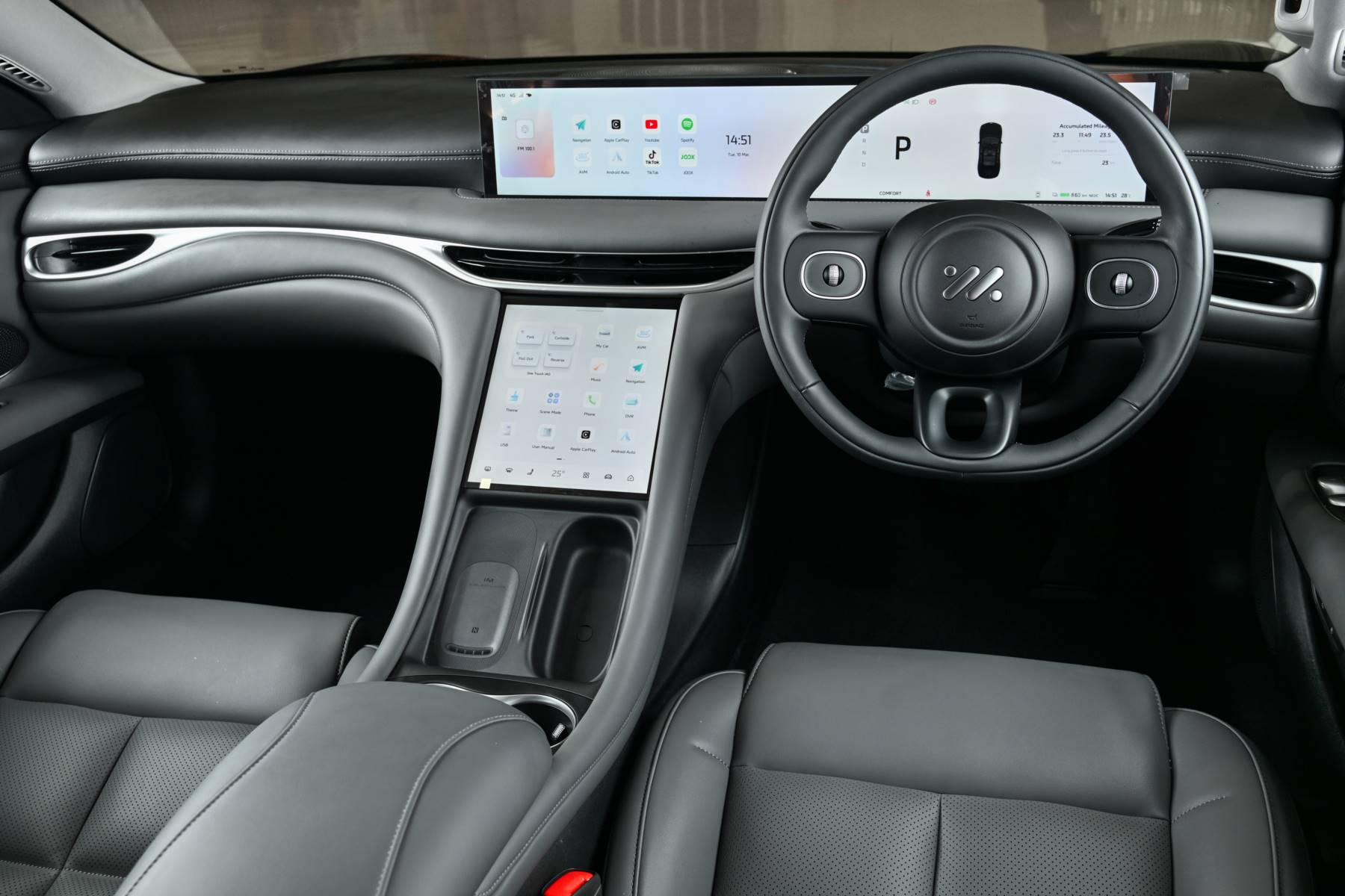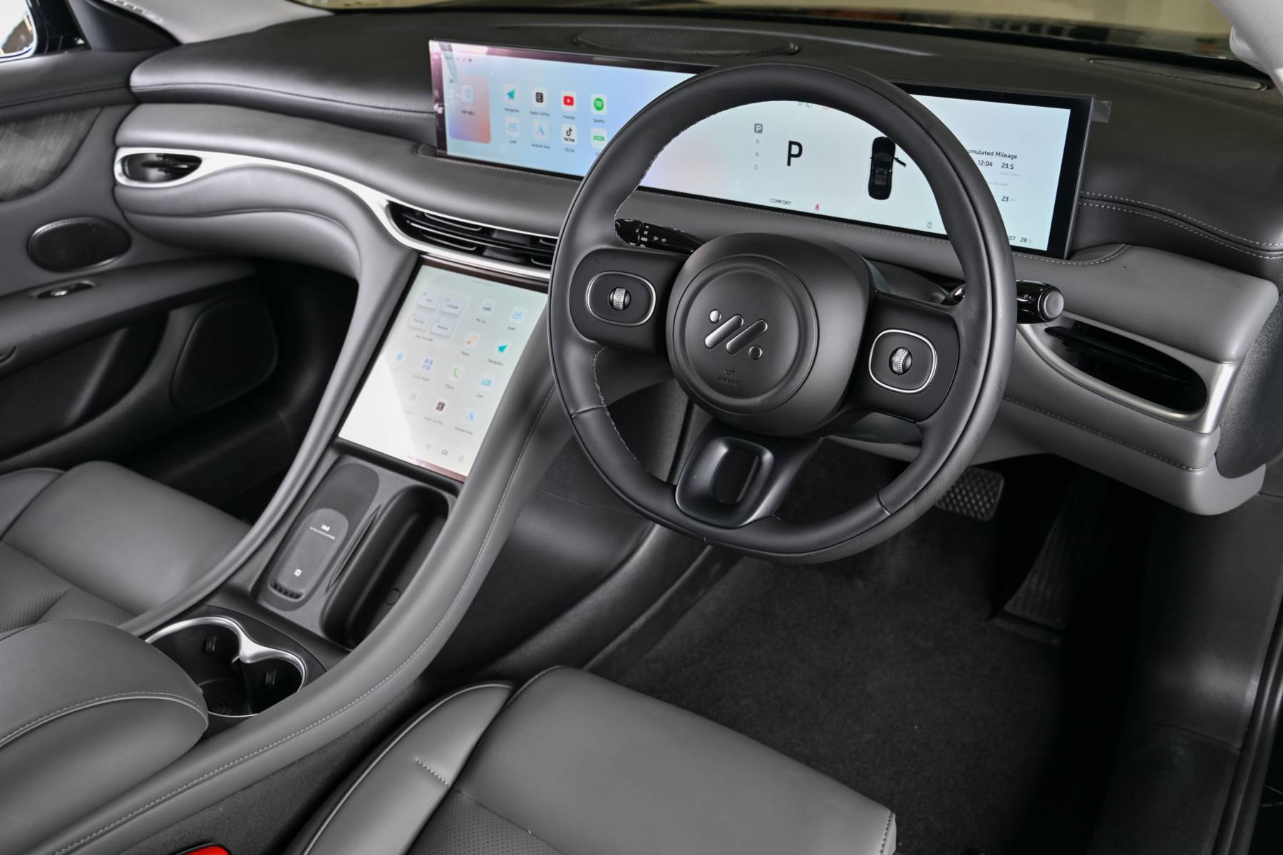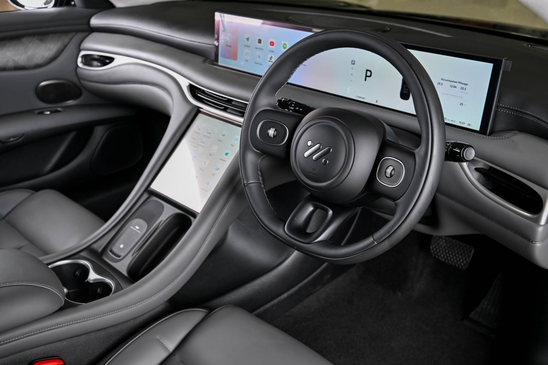 - หน้าจออัจฉริยะระบบสัมผัส Intelligent Immersive Touch Screens จำนวน 2 จอขนาดใหญ่ ประกอบด้วย หน้าจอแสดงผลอัจฉริยะแบบดิจิทัลขนาด 26.3 นิ้ว และหน้าจอกลางแบบสัมผัสขนาด 10.5 นิ้ว สำหรับ ควบคุมส่วนต่าง ๆ ภายในรถ