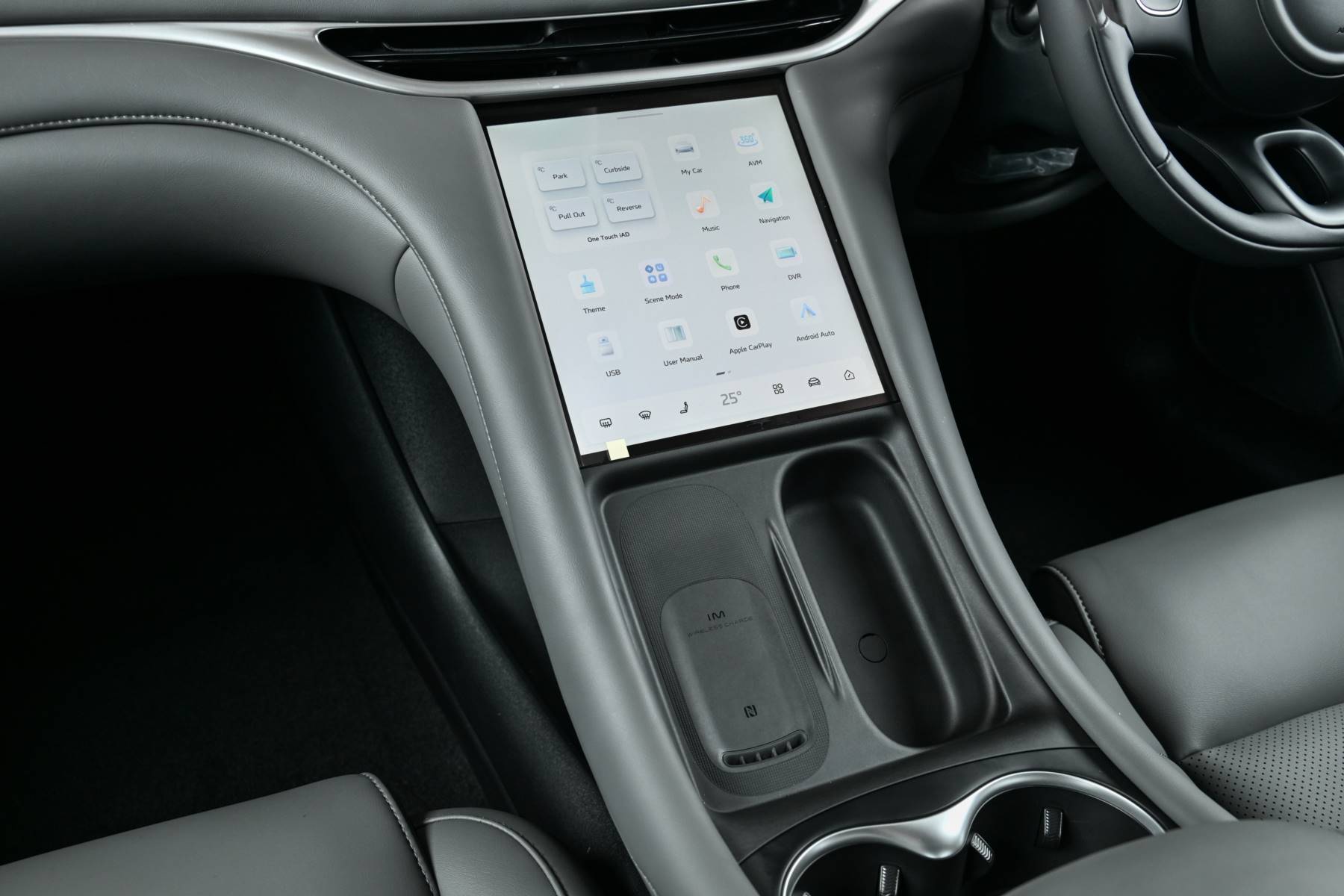 - ดีไซน์คอนโซลหน้าด้วยวัสดุ Soft Touch พร้อมที่วางแก้ว และรองรับการชาร์จแบบไร้สายกำลังไฟสูงสุด 50 วัตต์ (Wireless Charger)